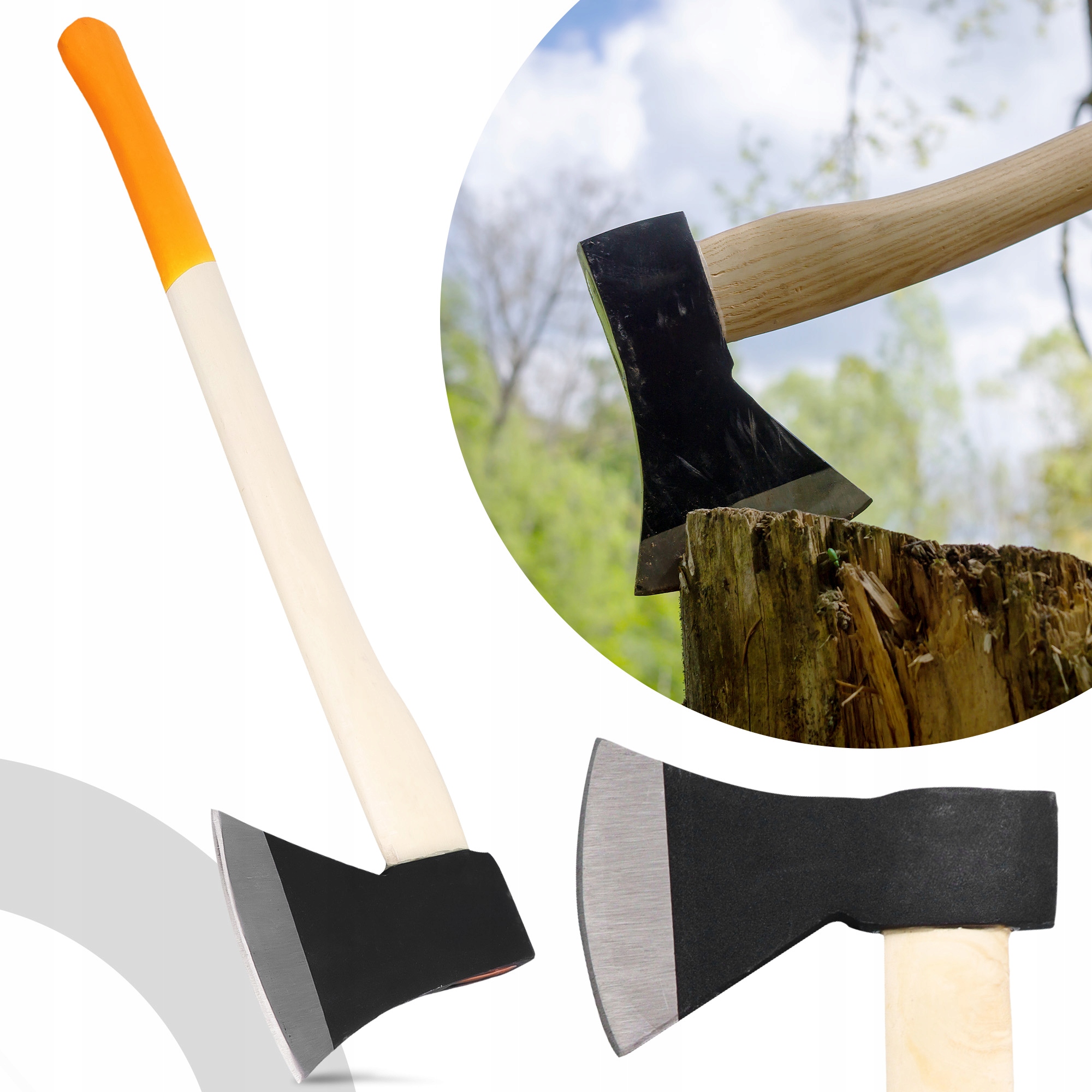 Топор с деревянной ручкой — практичный инструмент классической формы.