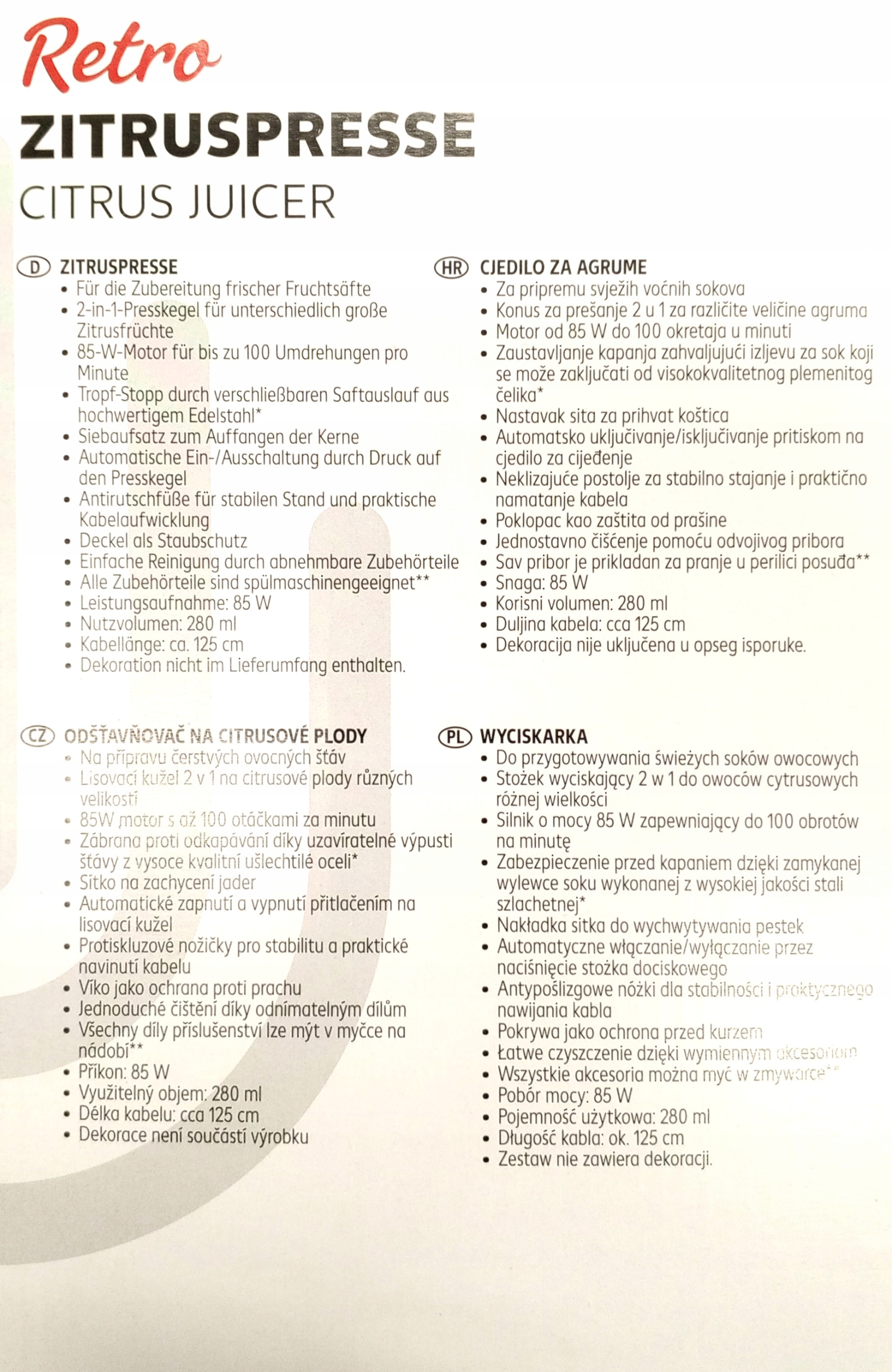 Соковитискач для цитрусових Switch On Retro 85W нержавіюча сталь бежевий