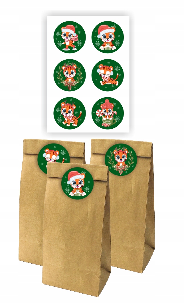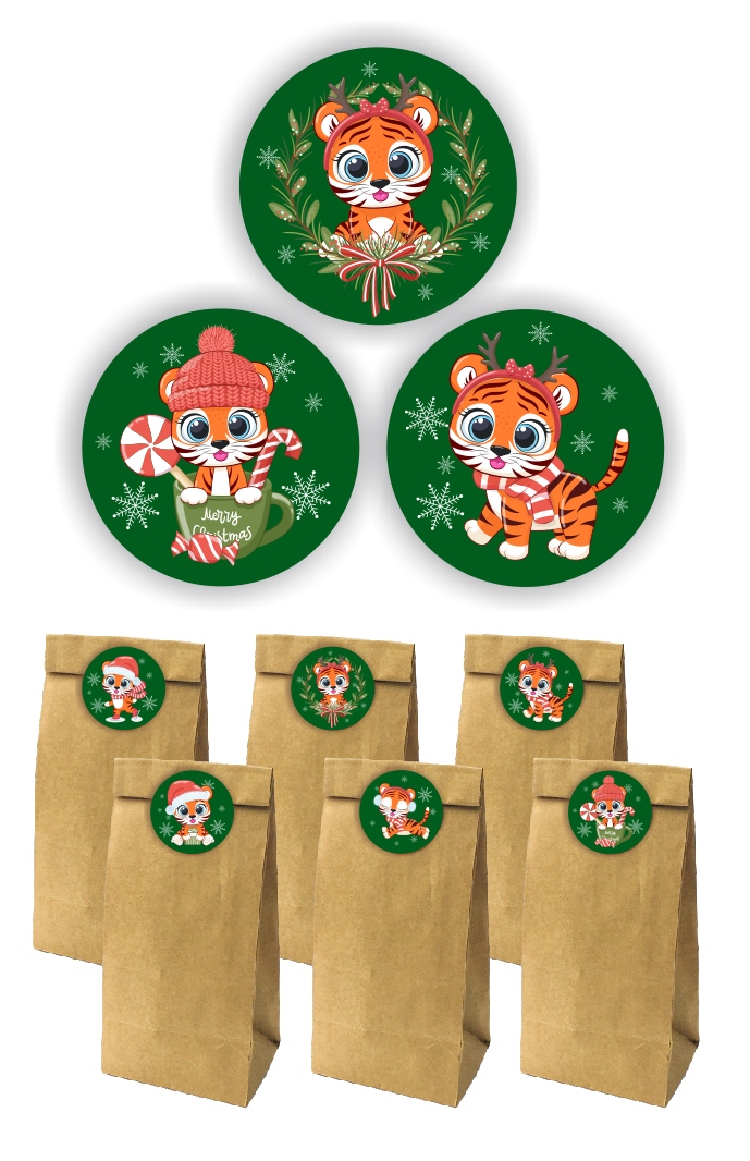 БУМАЖНЫЕ ПАКЕТЫ ДЛЯ СЛАДОСТЕЙ + НАКЛЕЙКИ С РОЖДЕСТВЕНСКИМ МОТИВОМ (схема 2)