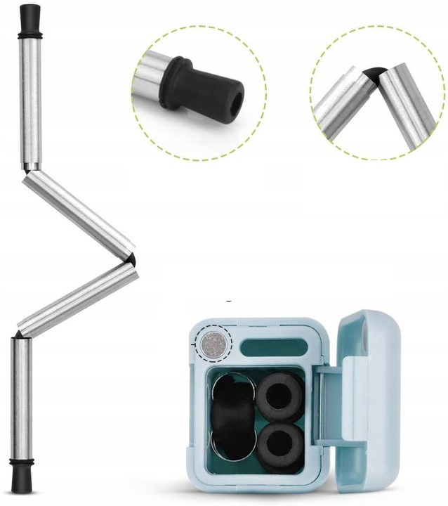 - Высокое качество. Складные трубочки изготовлены из нержавеющей стали 304 и пищевого силикона. Они не содержат пластика и BPA. Это нетоксичный, безопасный и здоровый материал, одобренный FDA.