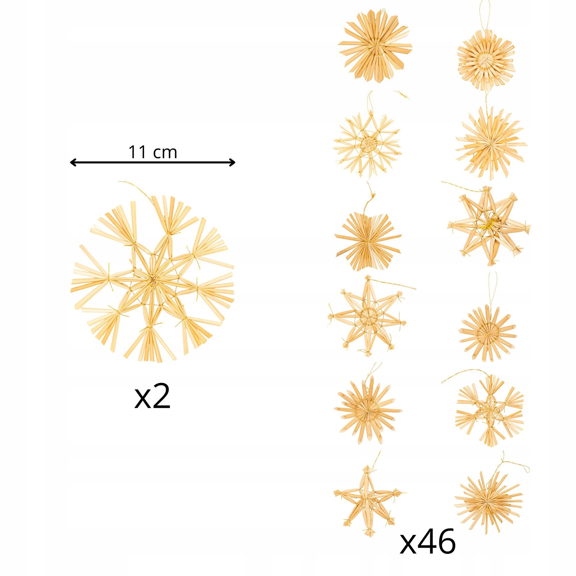 НАБОР УКРАШЕНИЙ ДЛЯ РОЖДЕСТВЕНСКОЙ ЁЛКИ ИЗ СОЛОМЫ 48x НАБОР УКРАШЕНИЙ ДЛЯ РОЖДЕСТВЕНСКОЙ ЁЛКИ 48x