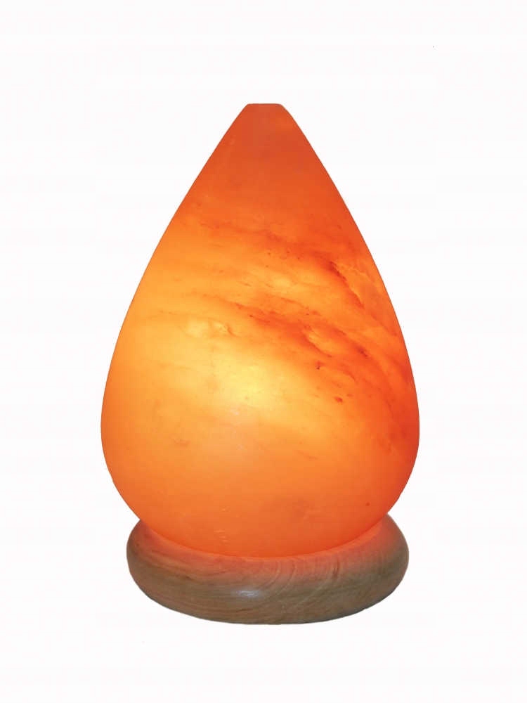 Соляная лампа представляет собой абажур из соляного кристалла естественного уникального оранжевого оттенка, вырезанный в форме капли дождя и установленный на деревянном круглом основании.