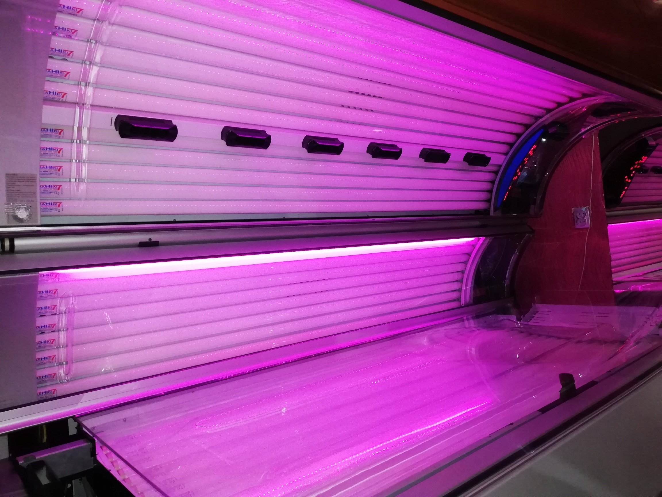 Подсветка устройства обеспечит прекрасная атмосфера в салоне и привлечение клиентов в ваш солярий. По специальному желанию клиента мы устанавливаем RGB-подсветку.