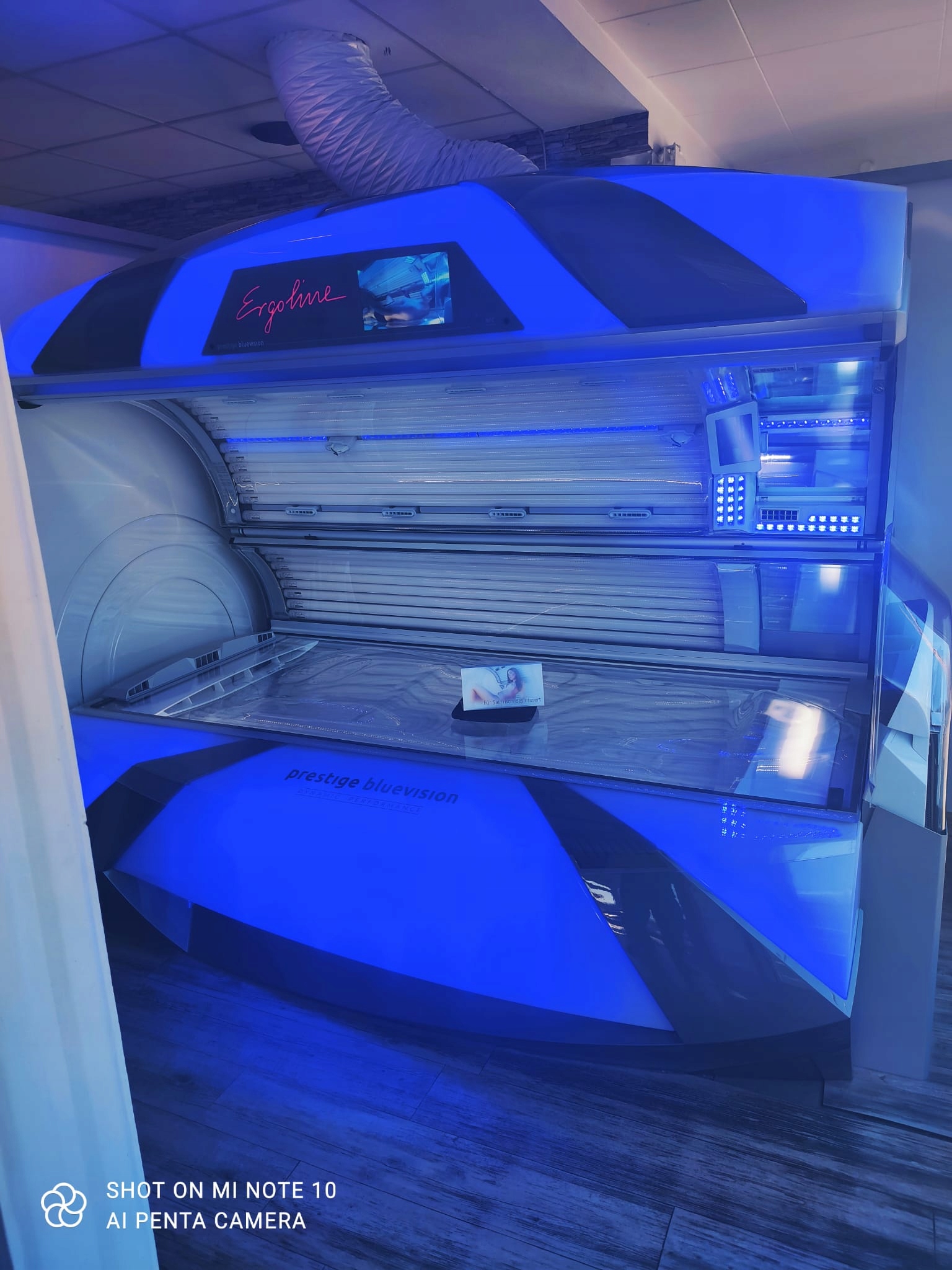 Новый солярий Prestige Bluevision использует силу синего света! Солярий Prestige Bluevision от Ergoline — первая модель, сочетающая в себе новейшие УФ-технологии с мощностью 120 светодиодов активирующего света. Синий свет активизирует весь организм и подготавливает кожу к загару. Это обеспечивает особенно интенсивную прямую пигментацию. А это означает сразу видимый «ВАУ» эффект!