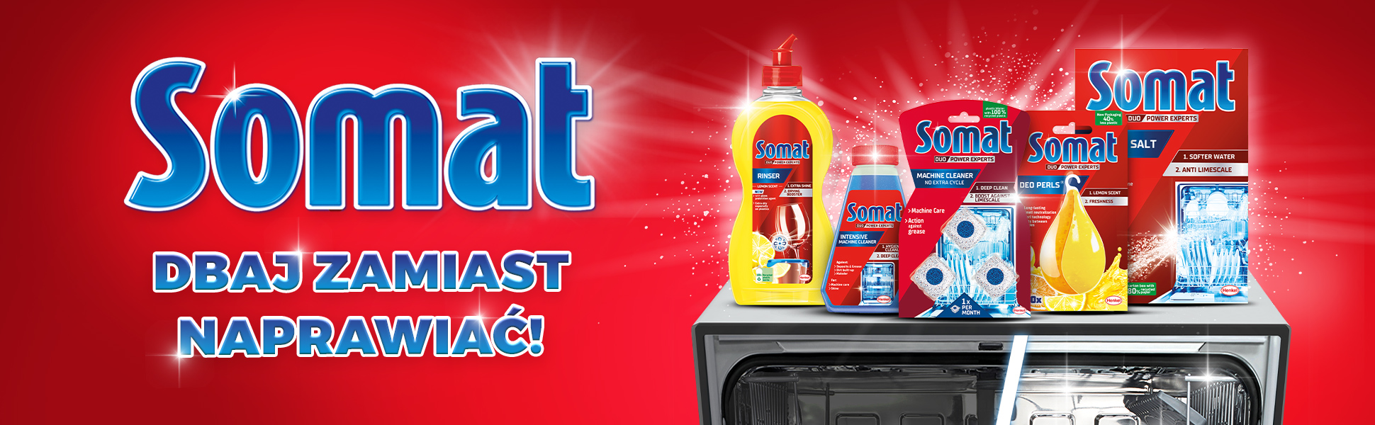 Благодаря более чем 50-летнему опыту и немецким технологиям компания Somat фокусируется на потребностях потребителей и инновациях. Заботясь об охране окружающей среды, в апреле 2016 года компания Somat ввела новые стандарты качества своей продукции, не содержащей фосфатов. Somat предлагает широкий ассортимент чистящих средств и добавок для посудомоечных машин, включая инновационные продукты, такие как таблетки Somat Gold с 12 функциями для эффективного устранения ожогов.