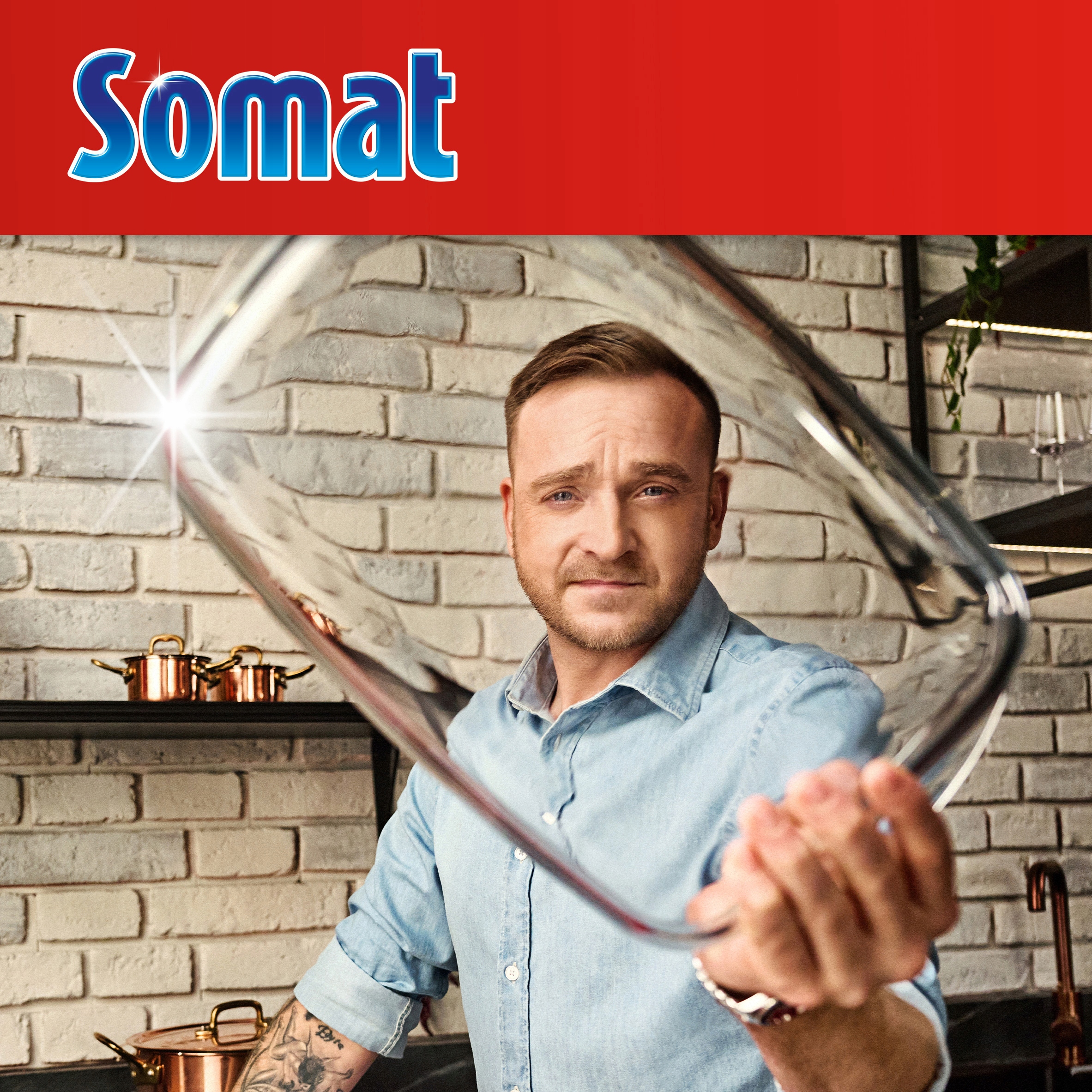 - Без необходимости предварительного замачивания: Somat Gold Talks Удалите даже самые трудные для удаления пищевых остатков, например, после выпечки, сухой каши или сгоревшего соуса и жира. Пятна: Somat Gold ТАБЛИЧНЫЕ растворяются быстро, оставляя блестящие тарелки, столовые приборы и очки, без следов пятен.