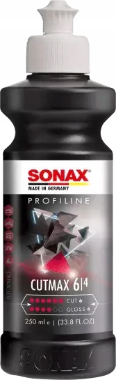 SONAX Profiline Cutmax — высокоабразивная полировальная паста, разработанная по малопыльной технологии. В отличие от большинства высокоабразивных полировальных паст, Cutmax обеспечивает превосходное качество отделки благодаря очень сильной абразивной силе. Кроме того, пыление сведено к минимуму, что улучшает работу с этим продуктом. Может использоваться на машинах двойного действия и роторных машинах. При использовании роторной машинки можно использовать жёсткие полировальные губки или мех