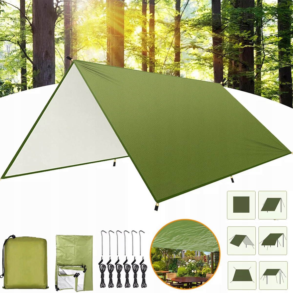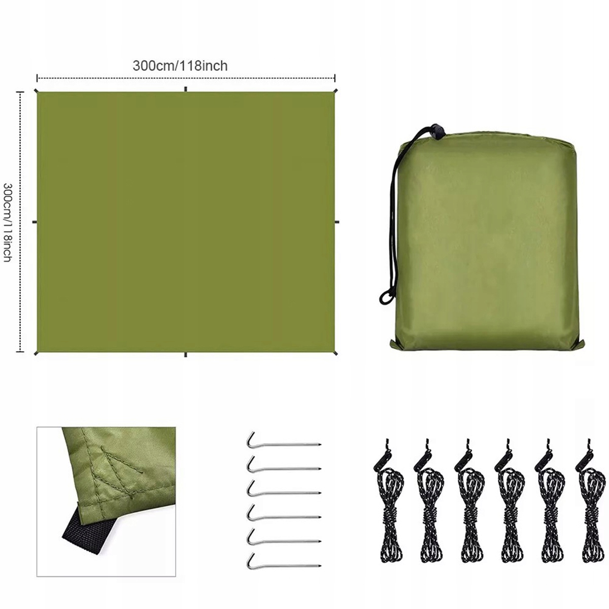 дождевая тарпалинь 3*3 м, крыша палатки, водонепроницаемый, туристический укрытие, складывание, свет, водонепроницаемый, защита от дождя, снег и солнце во время кемпинга (военный зеленый) h1>