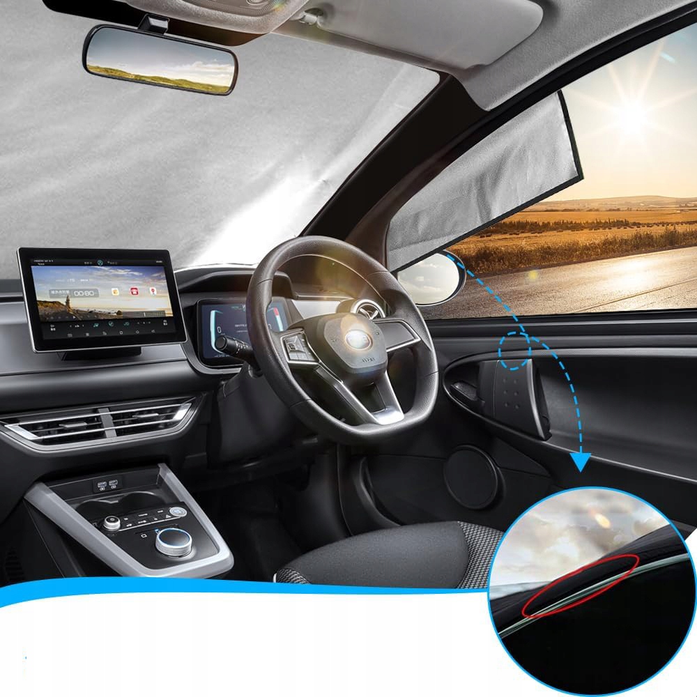 🚗🚗Сверхтолстая многослойная конструкция - Каждый козырек лобового стекла содержит четыре прочных слоя с двухсторонним алюминиевым покрытием. Этот очень толстый и прочный автомобильный чехол устойчив к теплу, огню и разрыву.