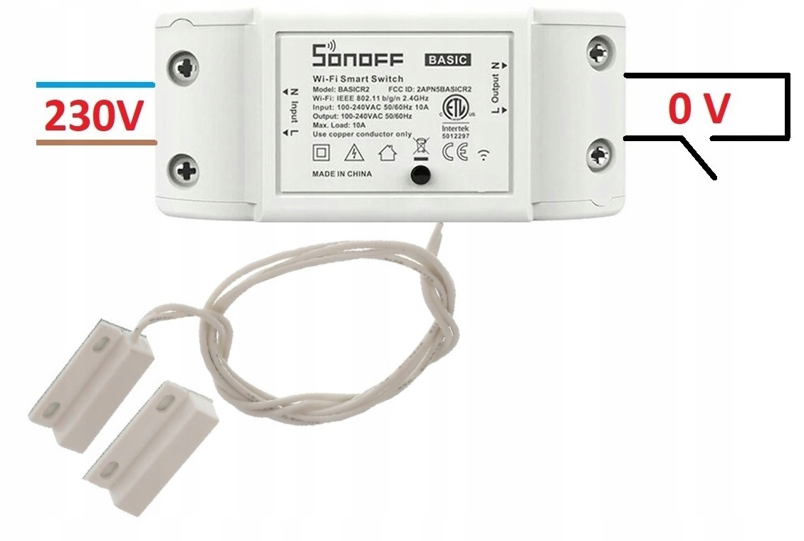 - Sonoff Basic R2 Реле WIFI с герконом, благодаря которому мы можем видеть состояние, например, ворот в приложении.