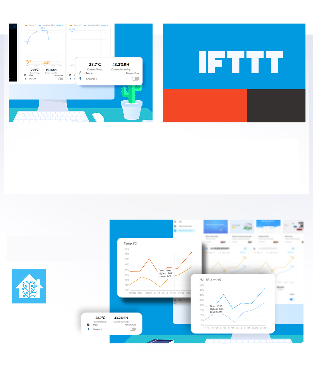 TH отслеживает температуру и влажность в режиме реального времени. При достижении установленного порога или изменении состояния включения/выключения устройства вы получите push-уведомление на свой телефон.