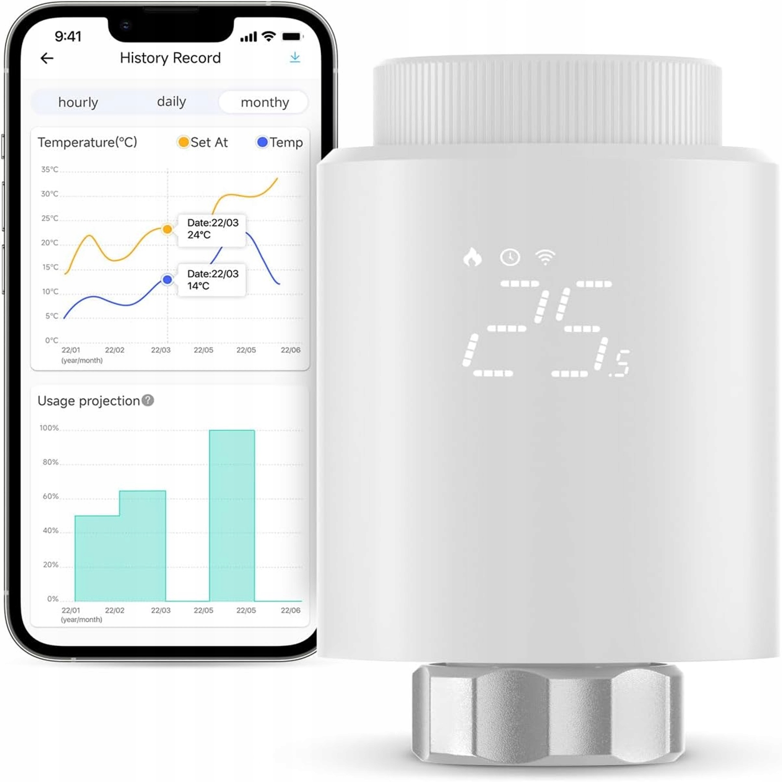 Настройте температуру из любой точки мира через приложение eWeLink. Создавайте расписания на каждый день недели — голова сама позаботится о подходящей температуре.