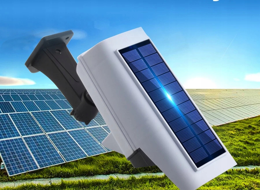 Высококачественный макет камеры наблюдения. Создается впечатление реалистичной камеры на солнечной энергии. Манекен также имеет функцию SMD LED ЛАМПА мощностью 77 светодиодов SMD, которая имеет встроенный датчик движения и сумерек