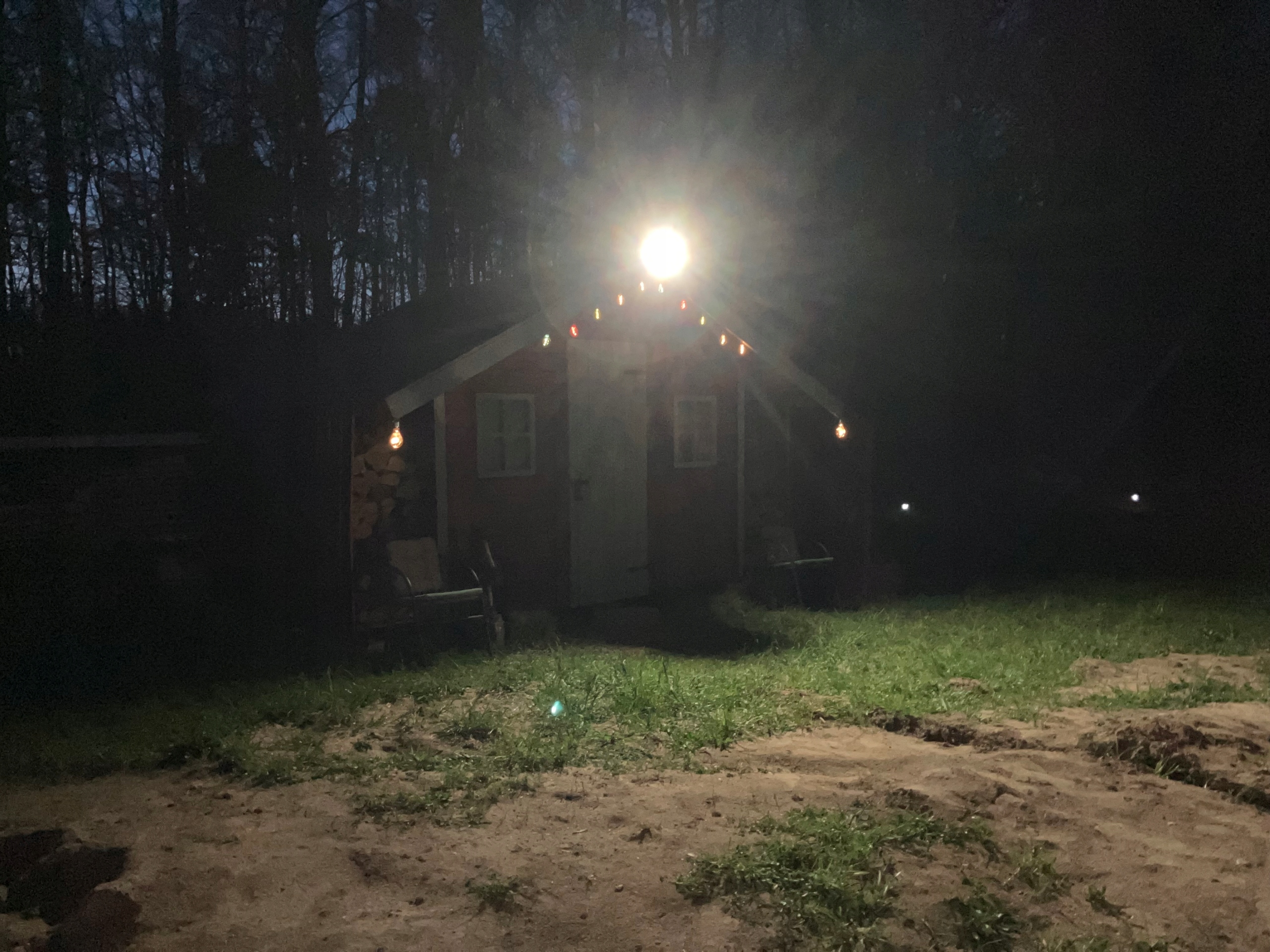 Здесь господин Мацей освещает вход в дровяной сарай/фермерский дом.