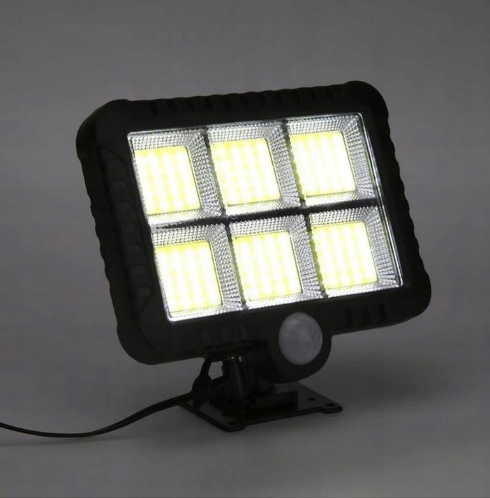 Calooroczna lampa solarna z 120 Diodami Led, Przeznaczona do montażu na cianie.zastosowanie na placach budowy, altanach, ogrodach, garażach, działkach, posesjach, parkingach.posiada dwary zujnikin ruchjnikin ruchjnikin ruj Zmierzchu. Stopień Ochrony ip65.lampa posiada strumień świetlny 1000 lumenów, Czas jej pracy to ok. 8 Годзин - ładowana Jest Za Pomocą danalaa SloNecznego. Время зарядки составляет около 6 часов на солнечном или 1-2 днях облачно. Датчик движения PIR имеет диапазон до 5 м.