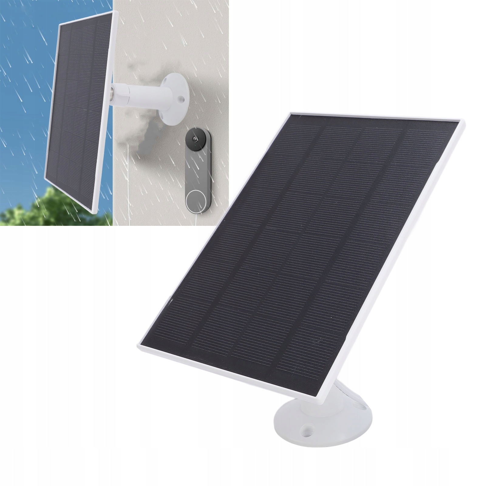 5. Легкая установка: 8 Вт. Зачарок для солнечного панели легко установить. Просто просверлите отверстия на стене, установите солнечную панель и подключите зарядный кабель к дверному звону. Он может быть прикреплен к стене, крыше, двору или другим соответствующим местам для стабильности и безопасности