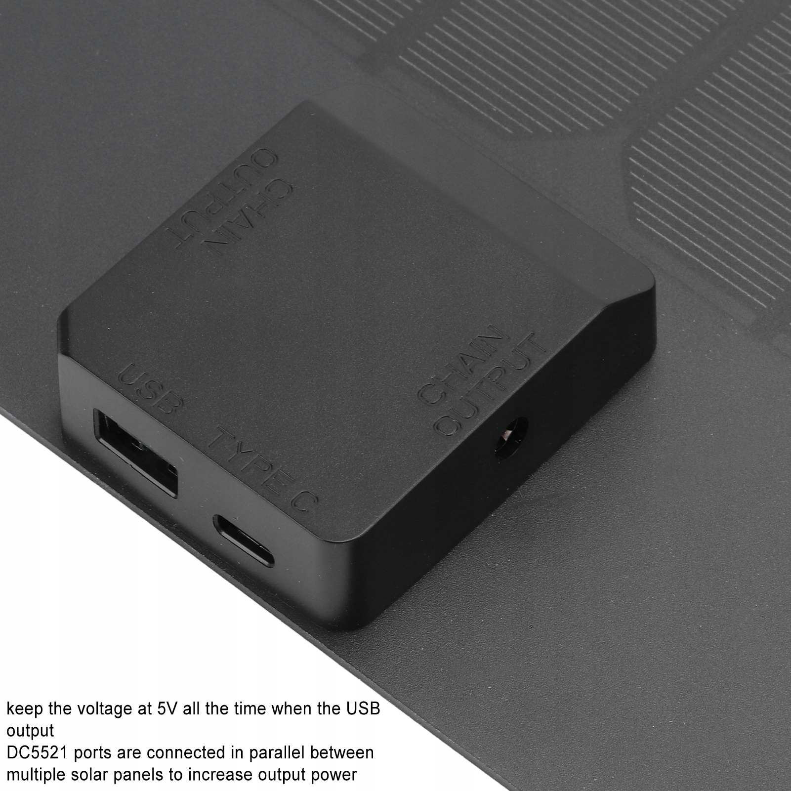 3. Подключите порты DC5521 параллельно к нескольким солнечным панелям, чтобы увеличить выходную мощность.