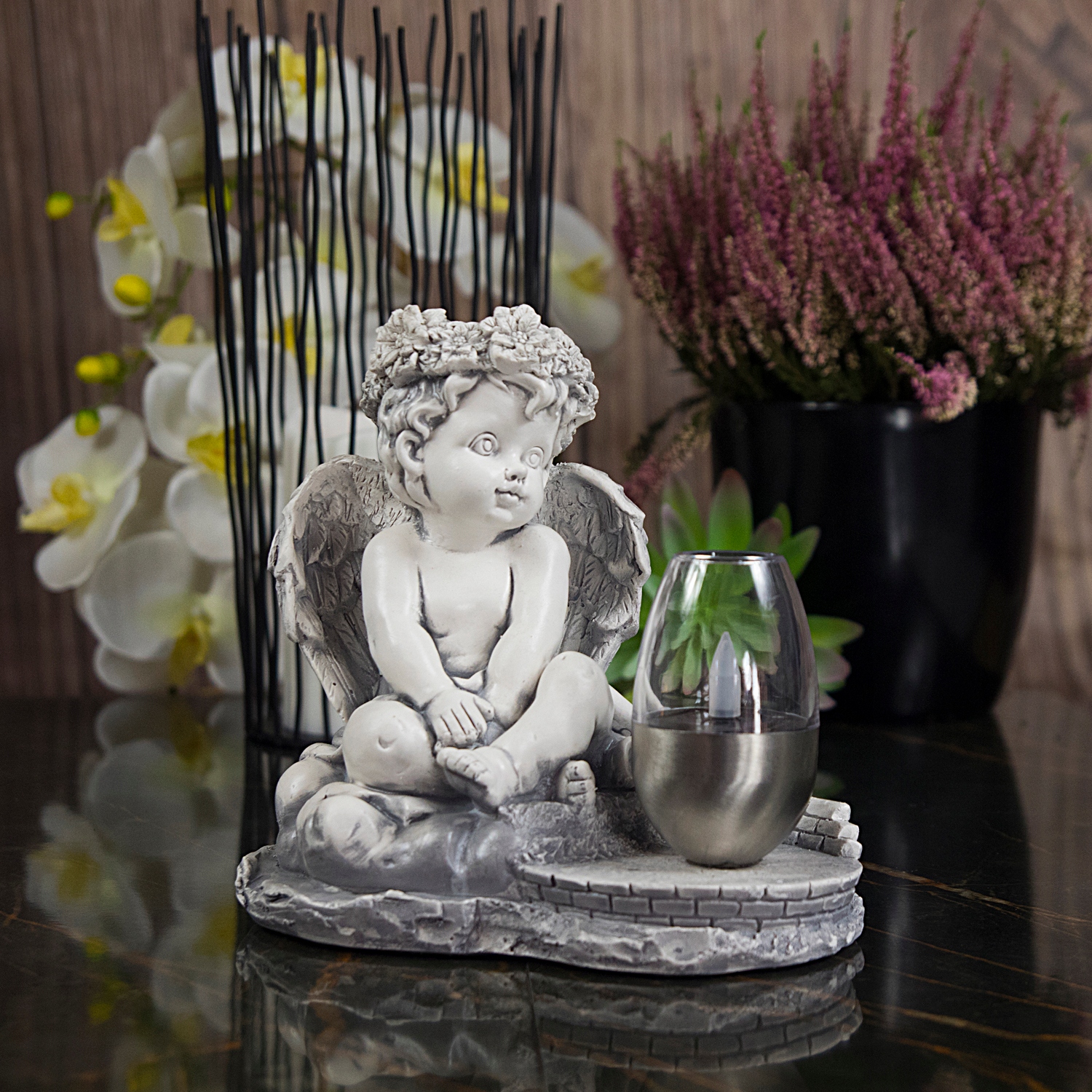 ➡️ Декоративная гипсовая садовая фигурка-надгробие со светодиодной лампой в форме ангела