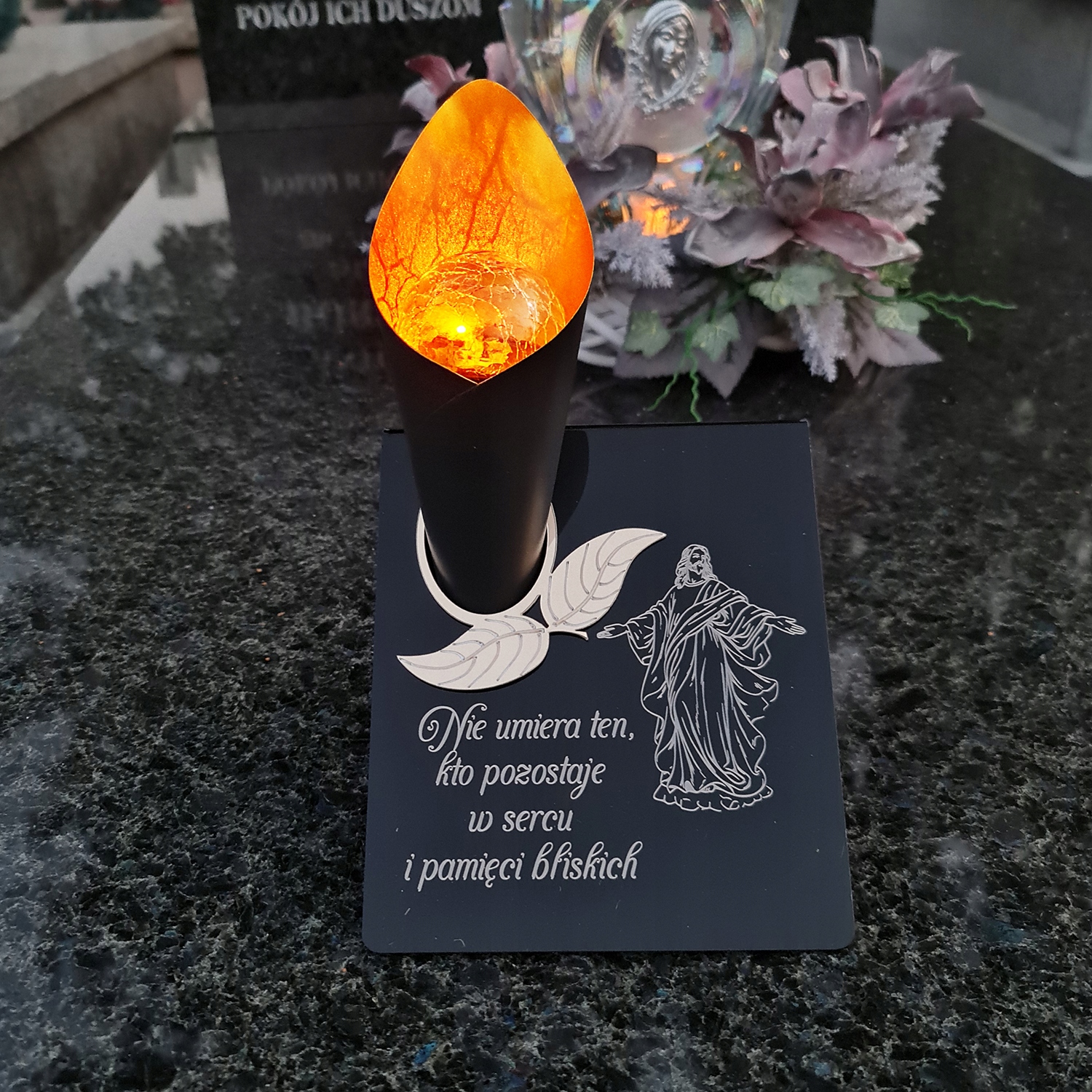 Вечная солнечная свеча для могилы с гравированным акриловым стеклом, украшенными золотыми листьями