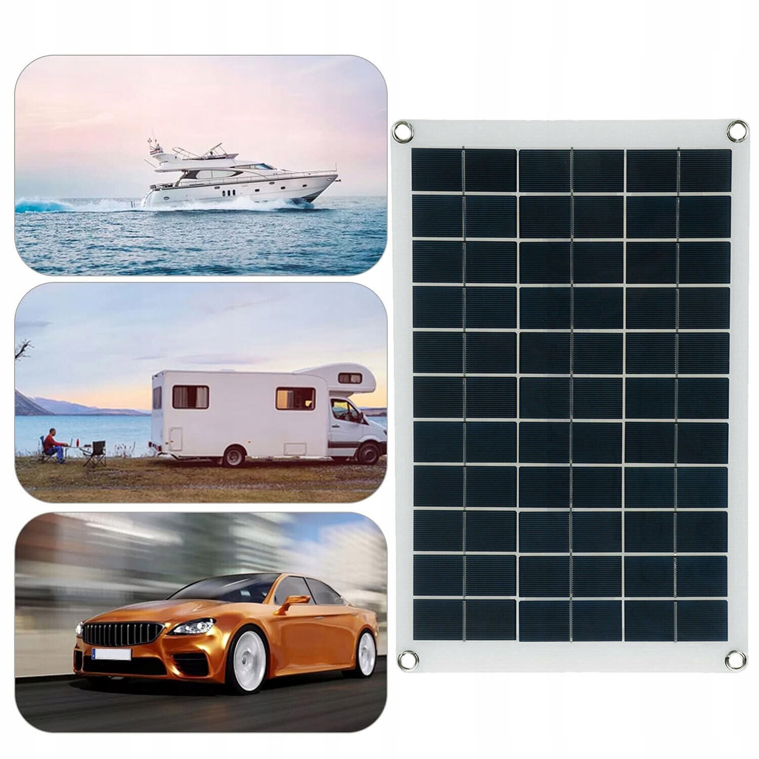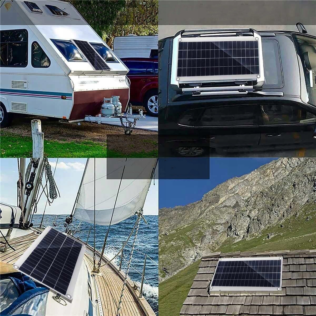 Набор солнечных панелей идеально подходит для зарядки батарей 12 V-24 V и предназначен для кемпинга, летних домов, домов, лодок, кемпинга, чрезвычайной ситуации и удаленного питания. Два порта USB позволяют питание мобильных телефонов и других портативных цифровых устройств.