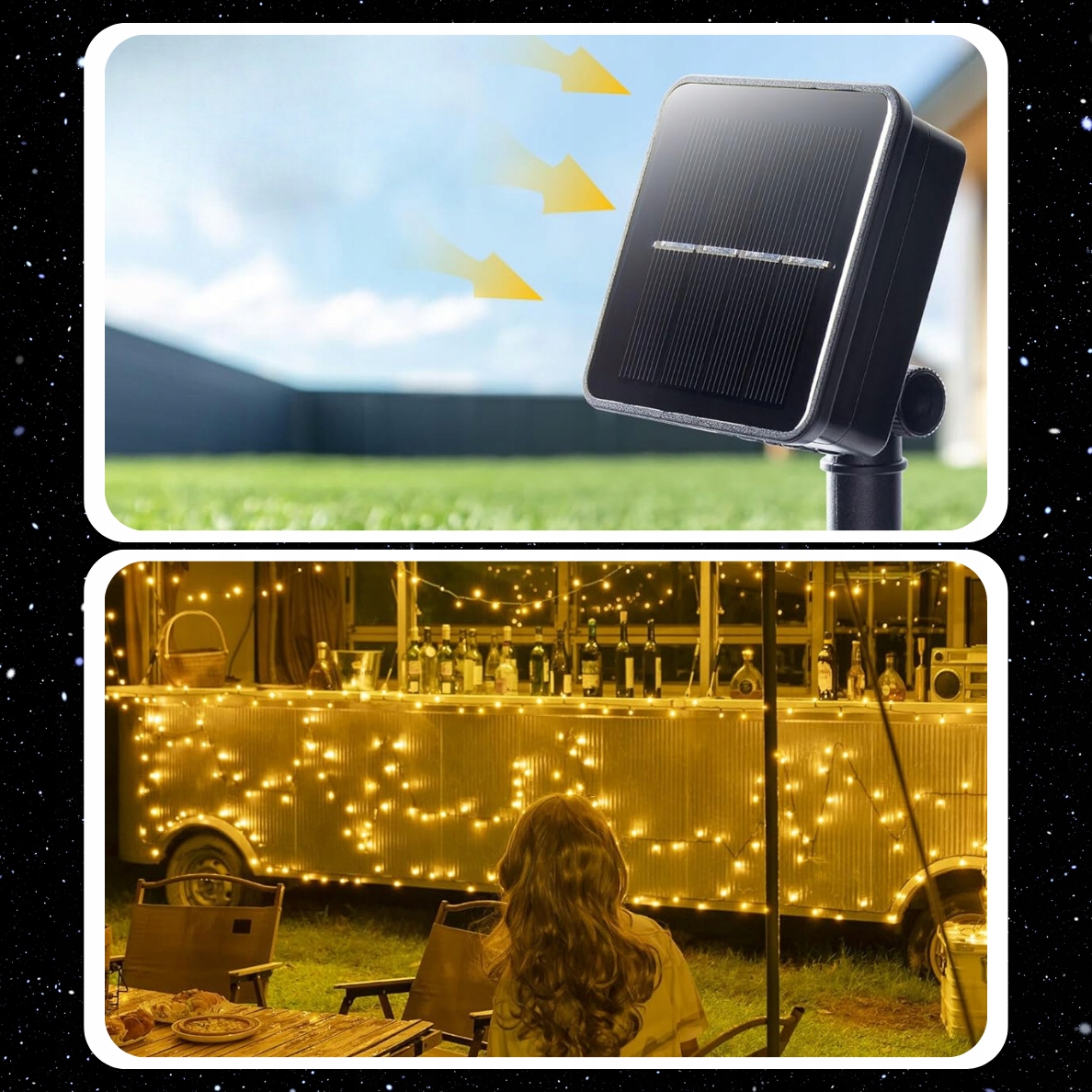 ➡️ ЛЕГКАЯ УСТАНОВКА - просто разместите солнечную панель в солнечном месте и лампы начнут работать самостоятельно после наступления темноты.