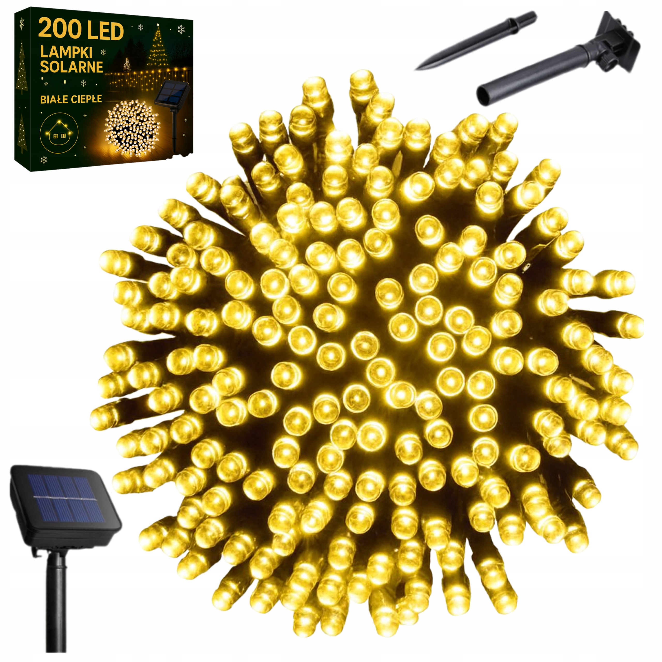 СОЛНЕЧНЫЕ РОЖДЕСТВЕНСКИЕ ОГНИ 200 СВЕТОДИОДОВ, НАРУЖНЫЕ, ТЕПЛЫЙ БЕЛЫЙ IP44
