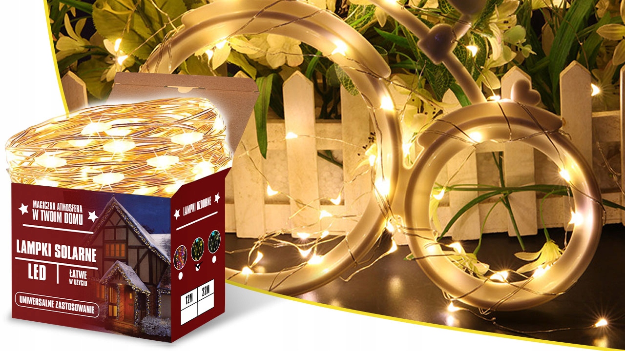 СОЛНЕЧНЫЕ СВЕТИЛЬНИКИ WARM WHITE 100 LED 12 M РОЖДЕСТВЕНСКИЕ ВОДОНЕПРОНИЦАЕМЫЕ НАРУЖНЫЕ