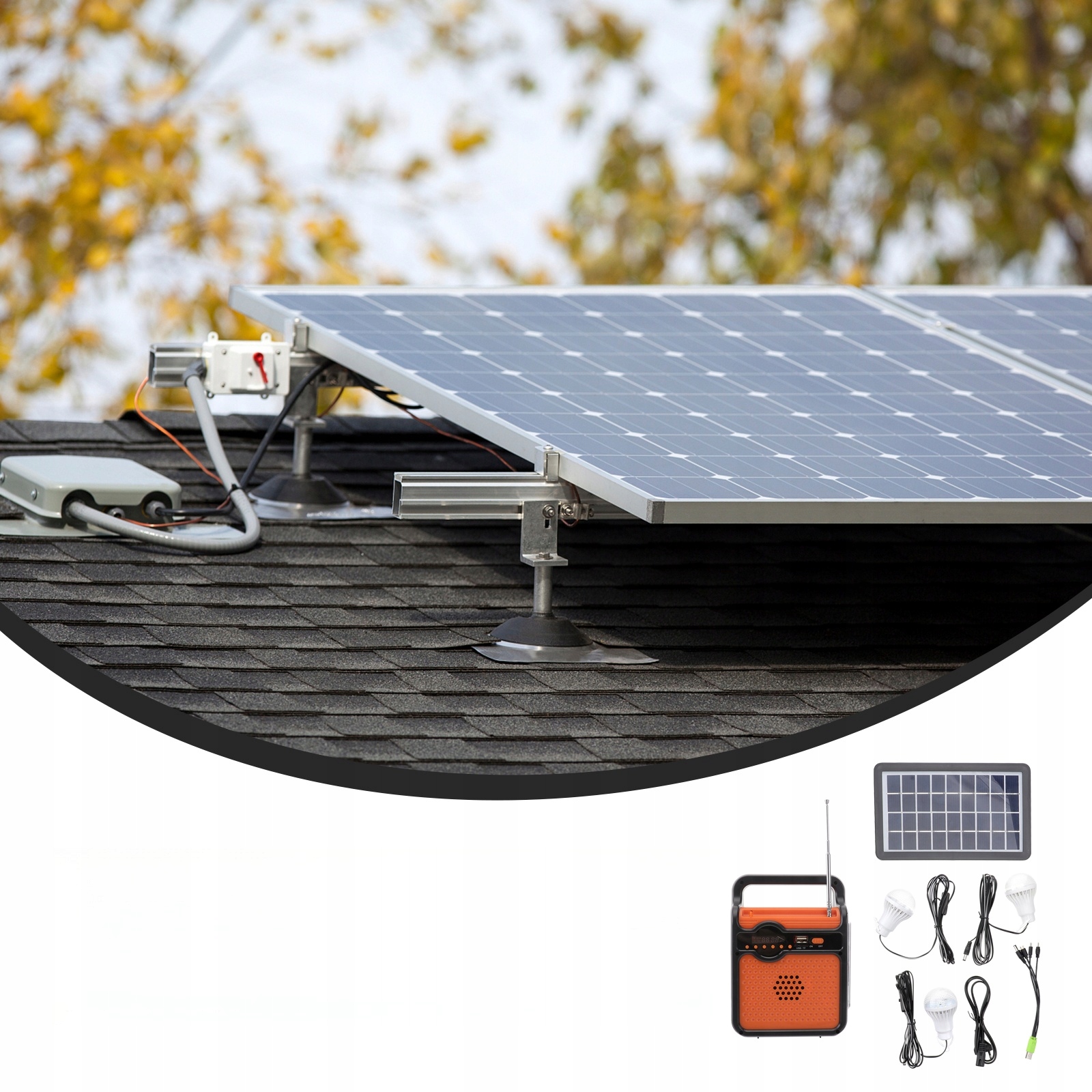 ✅- Комплект портативного солнечного генератора: перезаряжаемая система солнечного генератора со сменными батареями, оснащенная солнечной энергией, перезаряжаемый солнечный генератор с питанием от батареи и питанием светодиодного фонаря и мобильного телефона. Широко используется дома, в кемпинге, на колесах.