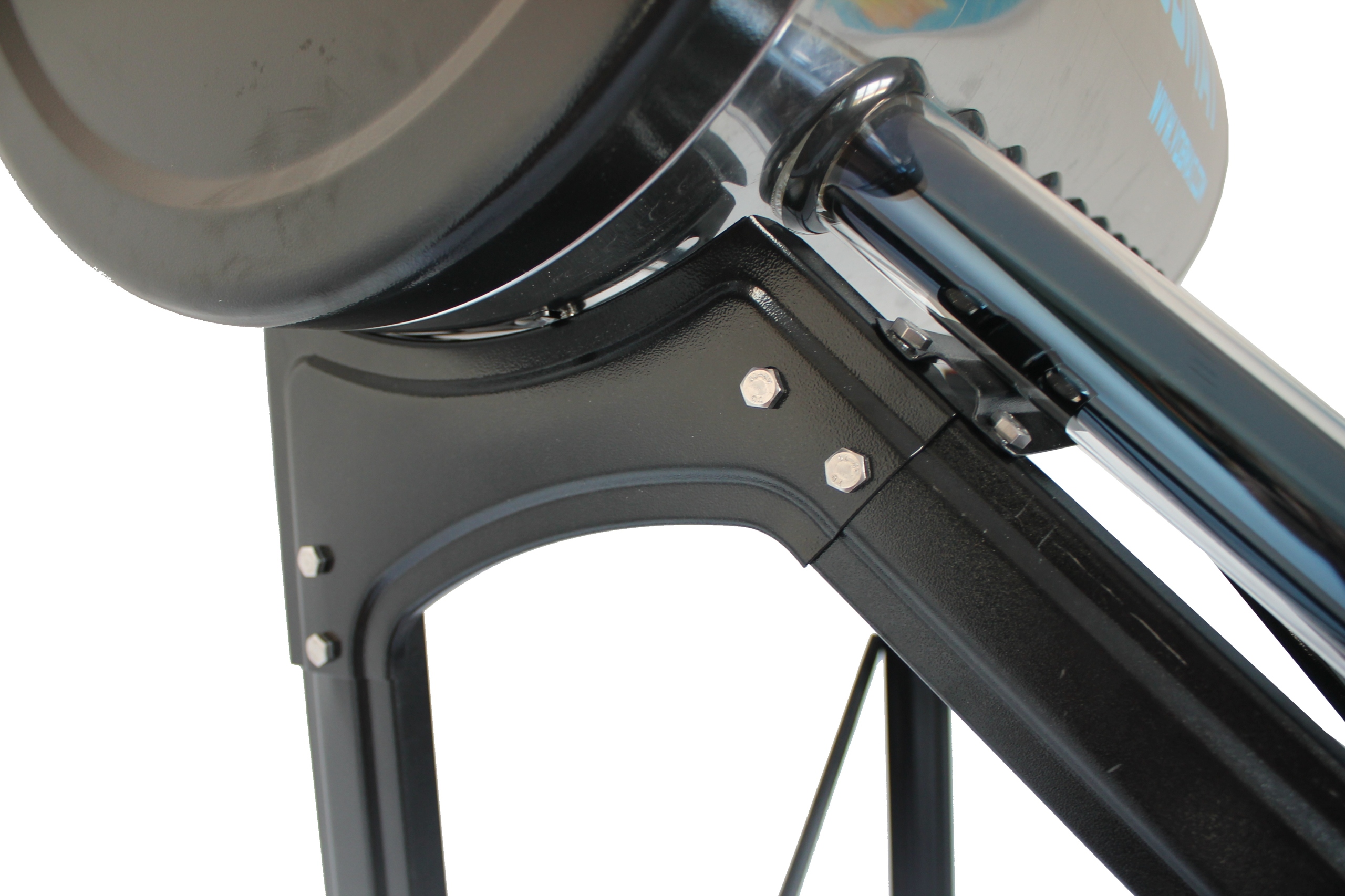 - Каркас, на котором размещен резервуар для воды и вакуумные трубки, сконструирован таким образом, что его можно разместить на ровной поверхности. или наклонной поверхности. Угол наклона рамы оптимален для достижения максимальной эффективности вакуумных трубок.