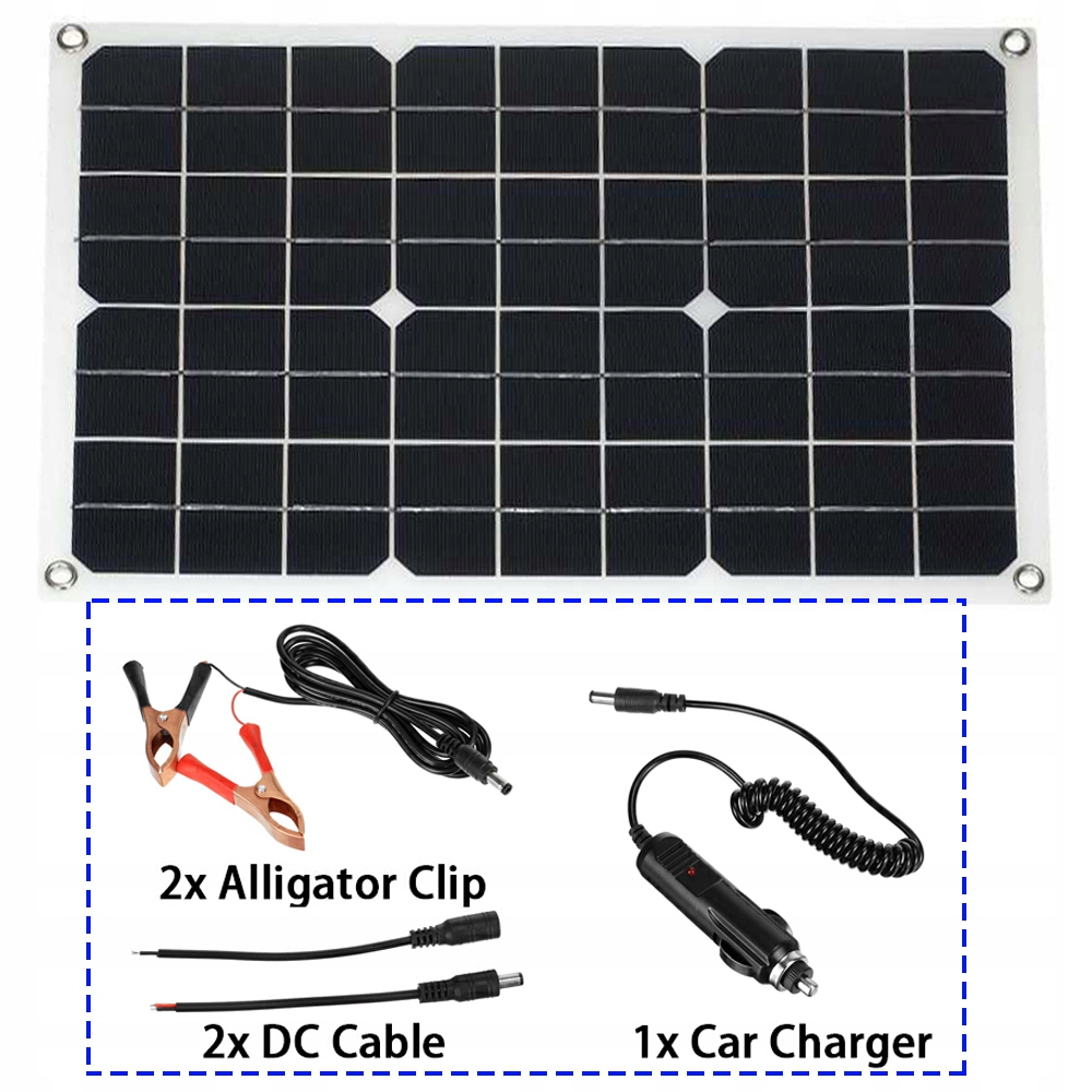 1 солнечная панель 18 Вт, 18 В + кабель постоянного тока + зажим «крокодил» постоянного тока