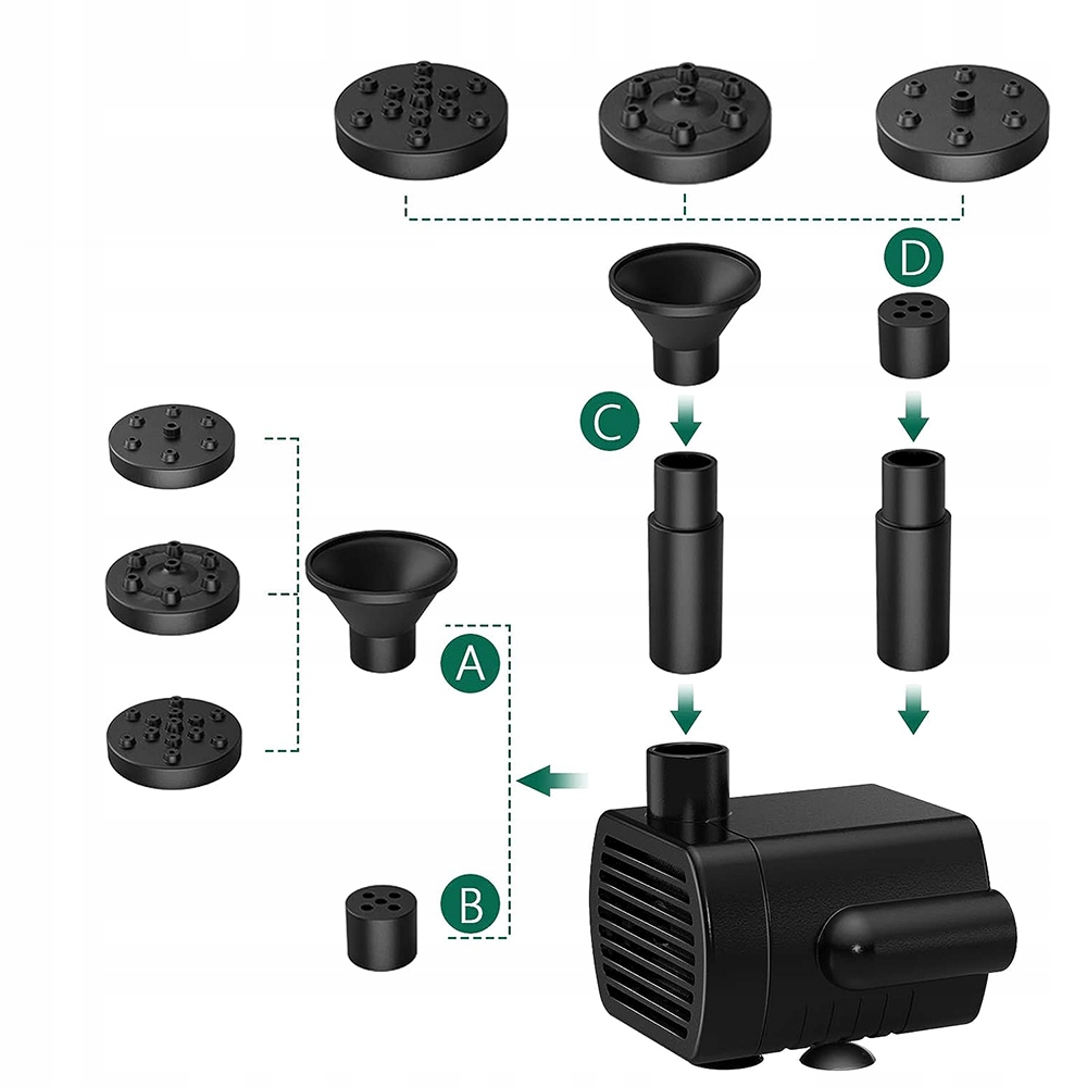 - 4 разные насадки могут удовлетворить различные требования к водному столбу высота или форма столба воды.