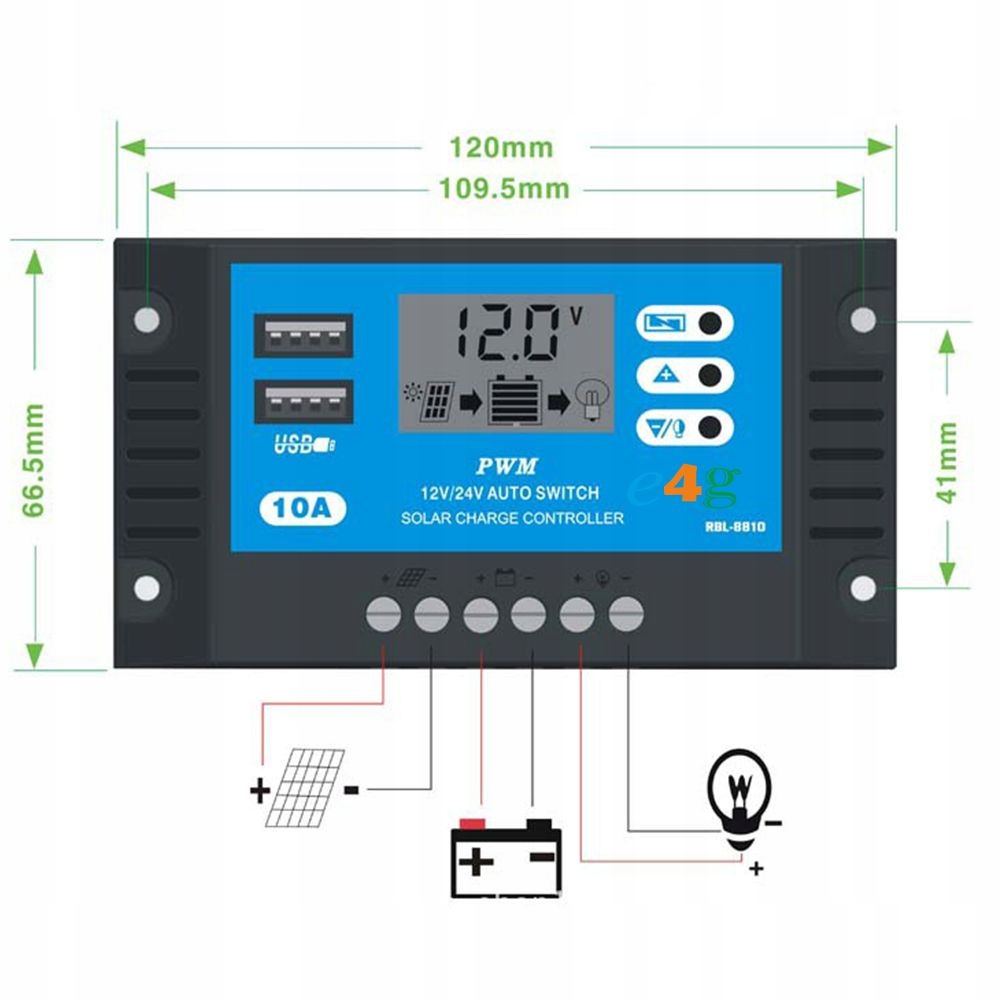04F10 КОНТРОЛЛЕР ЗАРЯДКИ СОЛНЕЧНОГО РЕГУЛЯТОРА 10A, для фотоэлектрических панелей 12/24 В с ЖК-дисплеем и портами USB