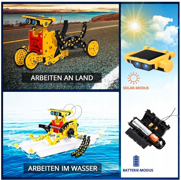 С помощью этой научной игрушки дети узнают, как построить робота, использующего солнечную энергию. В то же время он развивает ловкость рук и навыки решения проблем, улучшает логическое мышление, укрепляет уверенность в себе и подчеркивает важность командной работы и сотрудничества.