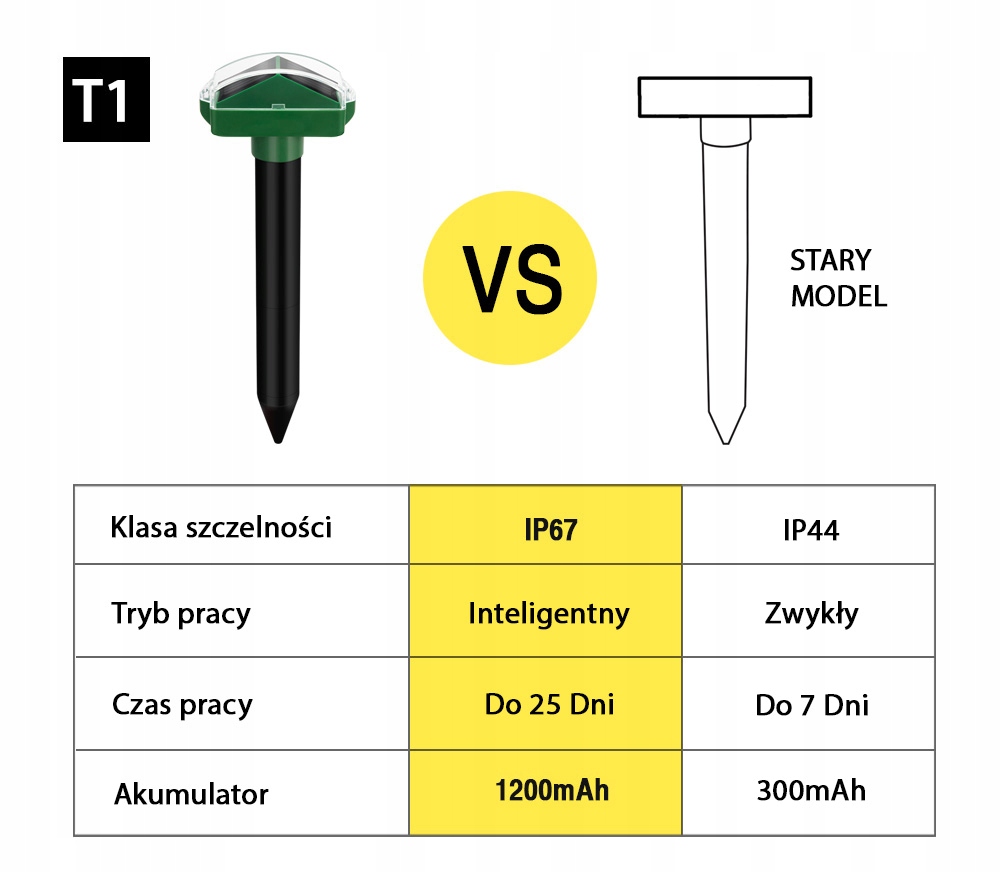 Эффективный солнечный отпугиватель кротов и полевок Т1 с переменной частотой (400 - 1000 Гц) 2 шт.