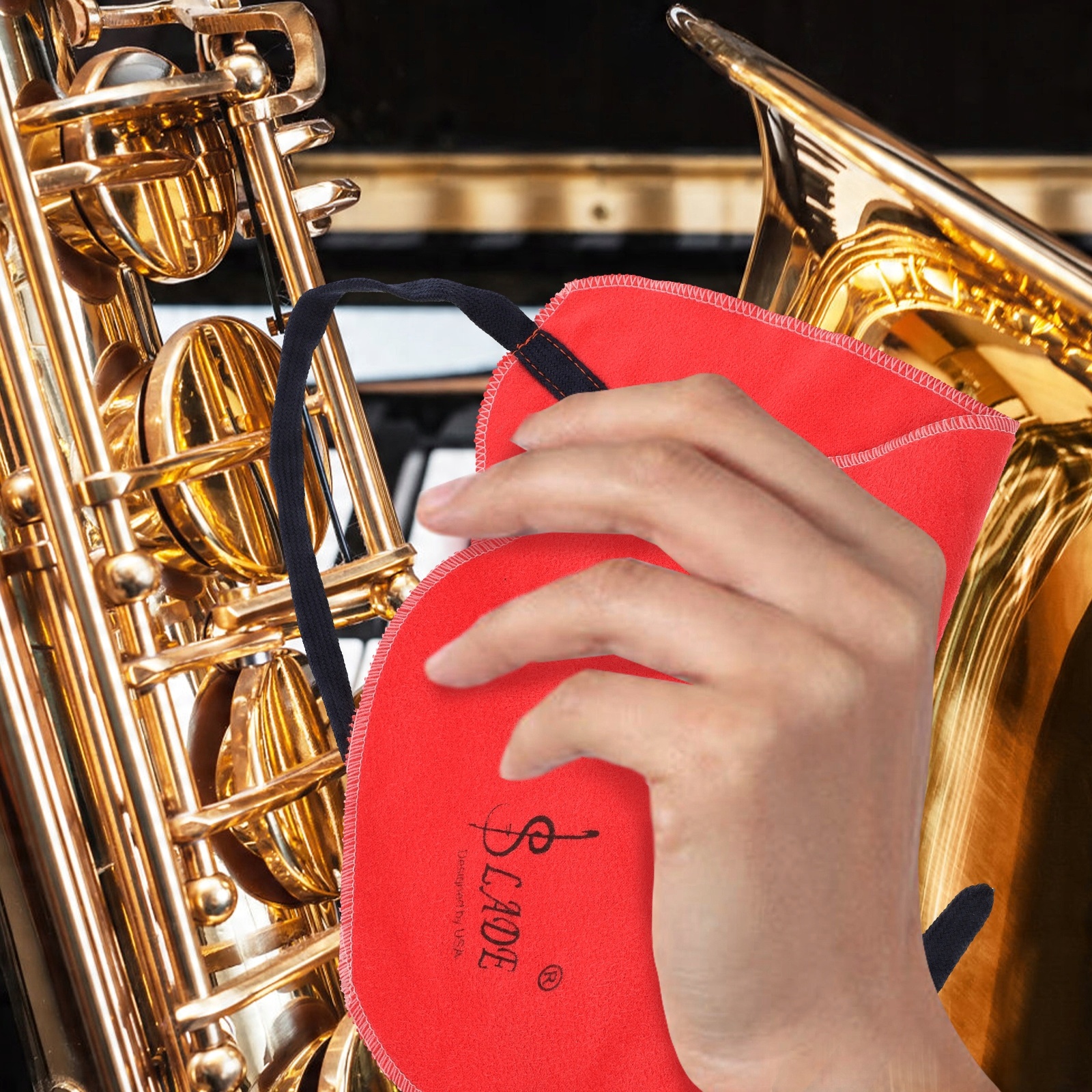 Салфетка для чистки саксофона изготовлена из гибких материалов, мягкая и долговечная в использовании.