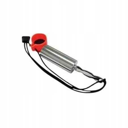 Shaker имеет пластиковый карабинер на одном конце, чтобы быть прикрепленным к куртке или крылу. Он изготовлен из нержавеющей стали, которая гарантирует сопротивление даже соленой воде.