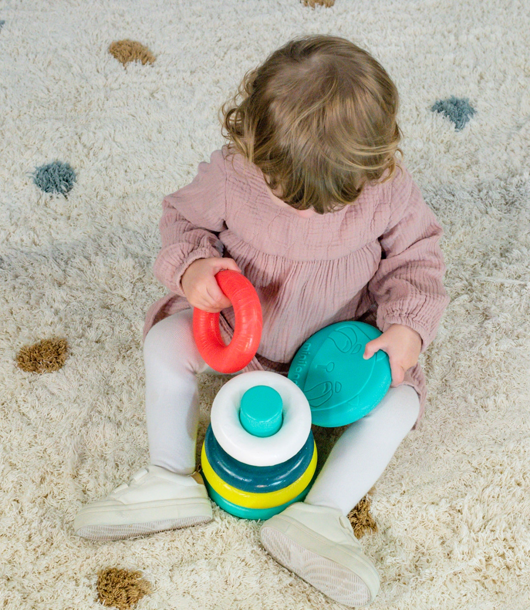 Если вашему малышу больше 6 месяцев, эта красочная развивающая пирамидка из коллекции Feel to Learn обязательно привлечет его внимание. Он состоит из 4 дисков разного размера и цвета, которые развивают пространственное воображение, а также моторику и логические навыки. Кроме того, отдельные кольца имеют разные канавки, которые стимулируют осязание.