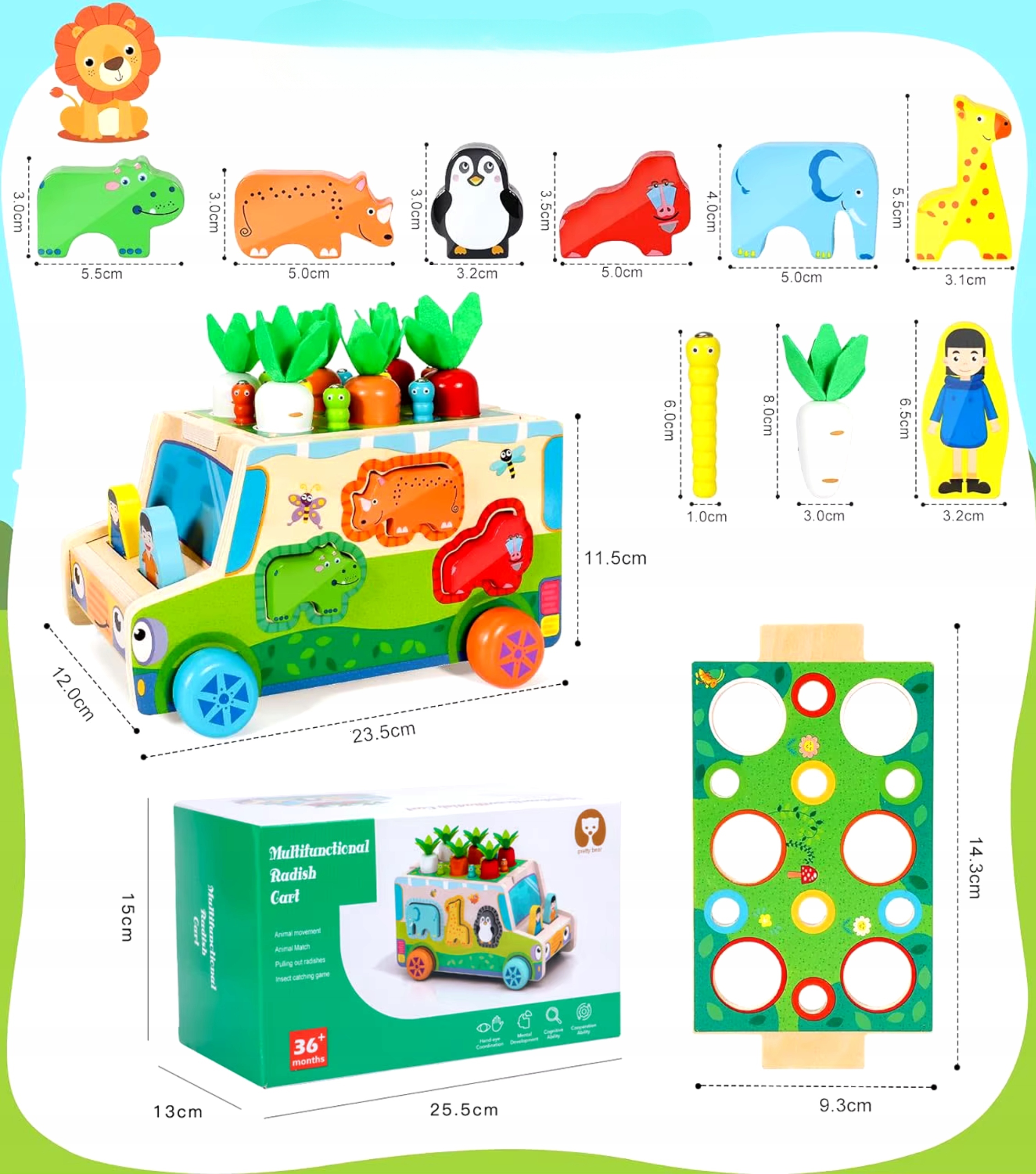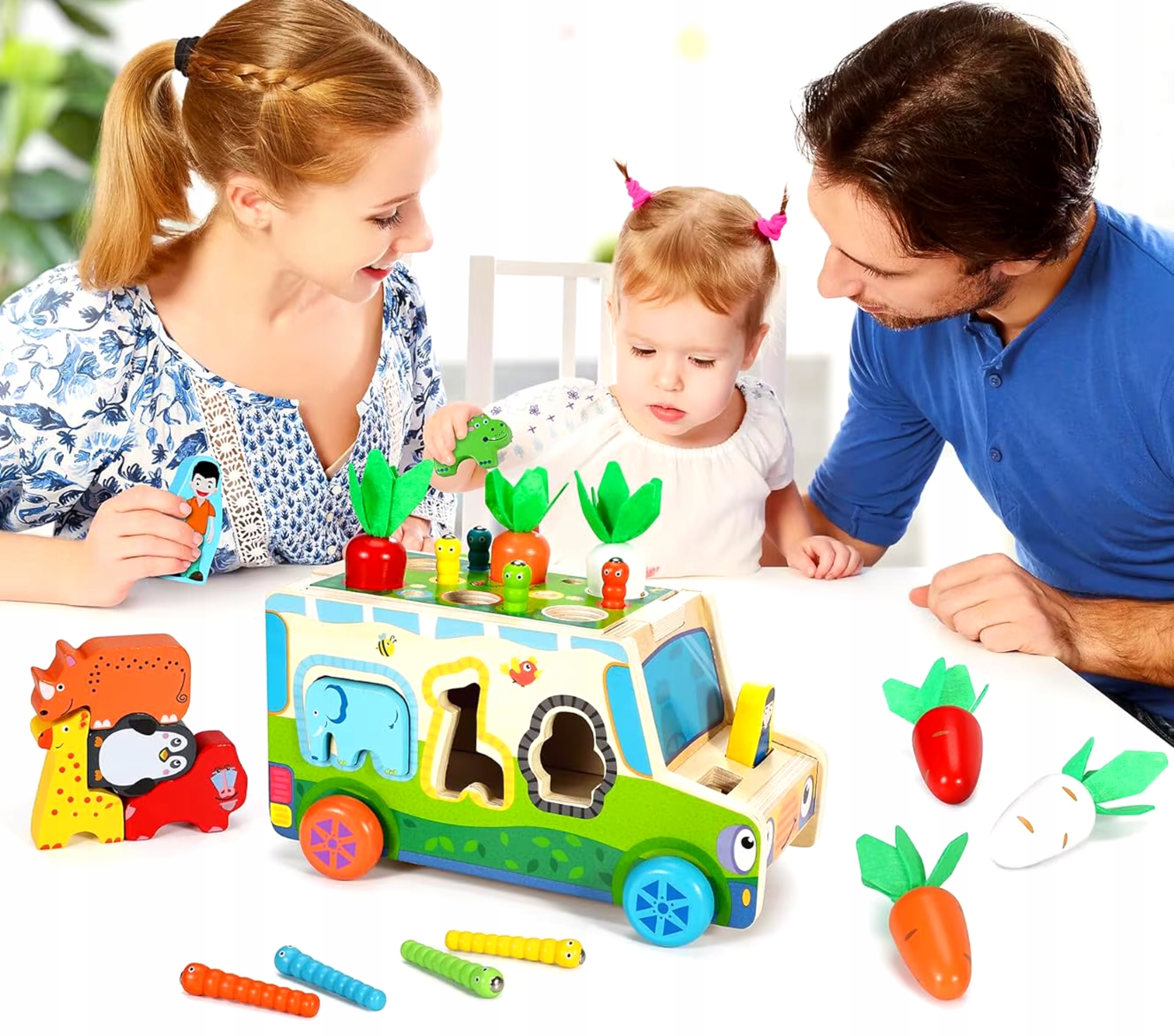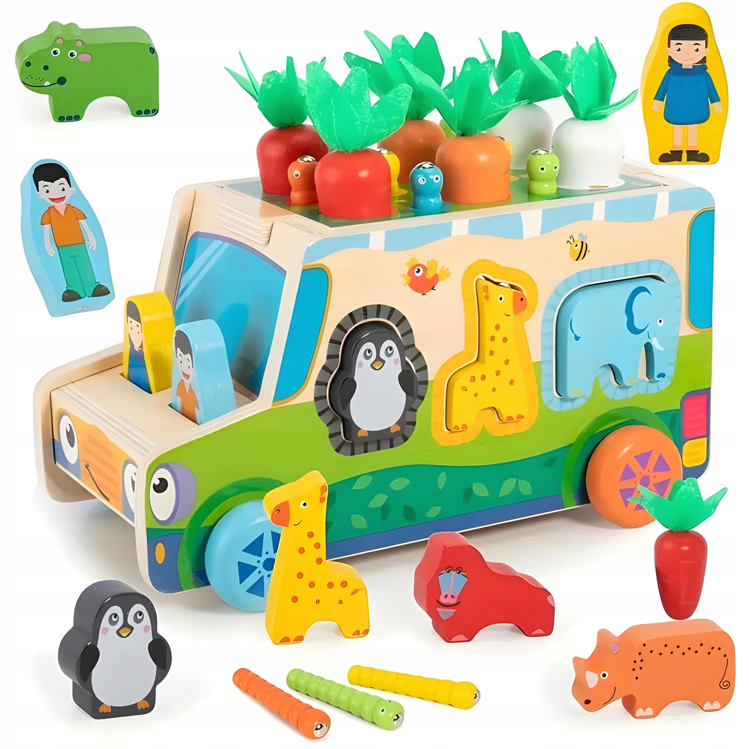 SORTER AUTO DREWNIANE UKŁADANKA WARZYWKA ROBACZKI ZWIERZĄTKA ŁADNE KOLOROWE