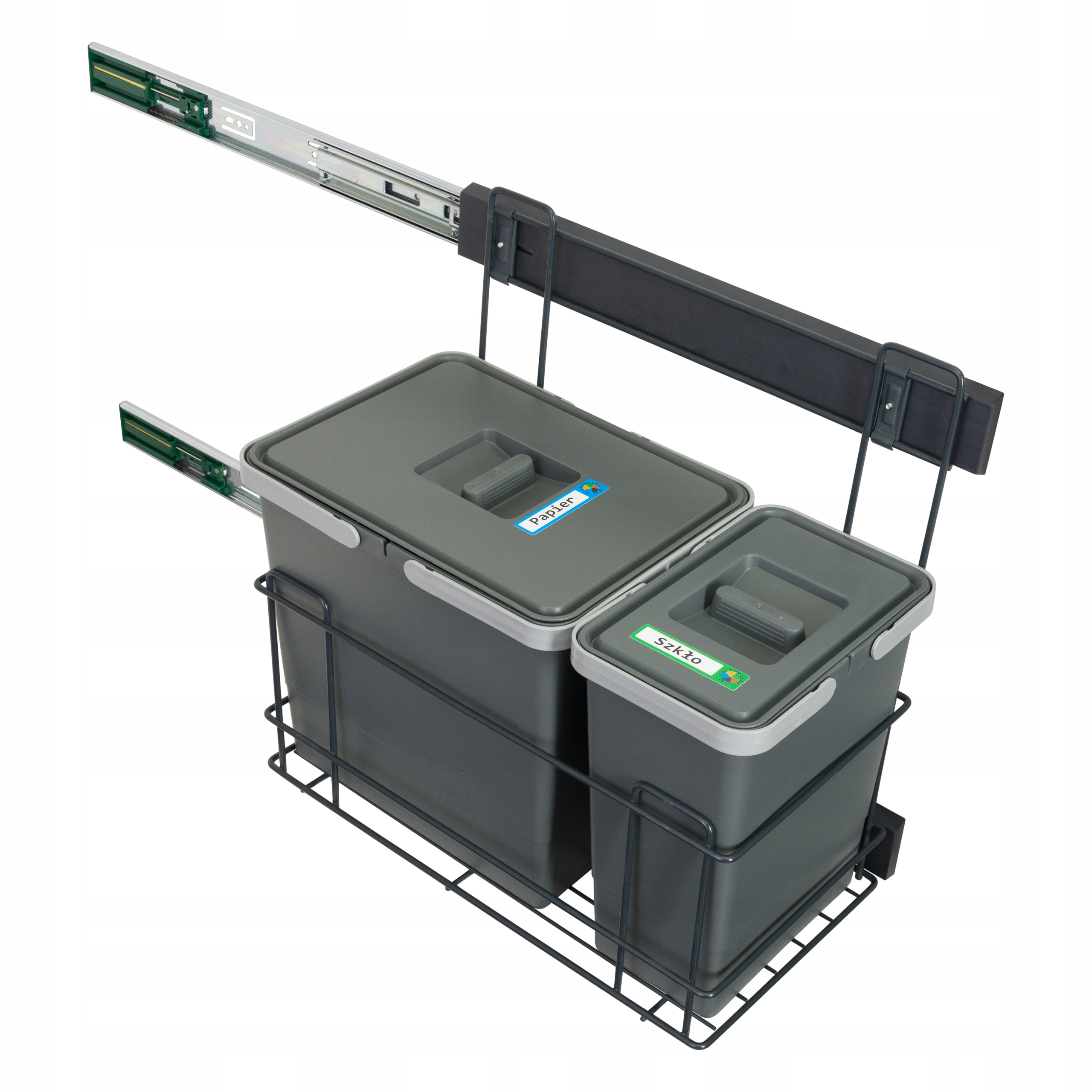 Боковой сортировщик мусора SORTOWNIKI24 SLIM SL301X151X738ANTR — эргономичный продукт из нашей оригинальной коллекции корзин. Предназначен для узких тумбочек под раковину шириной 30 см с навесным фасадом.