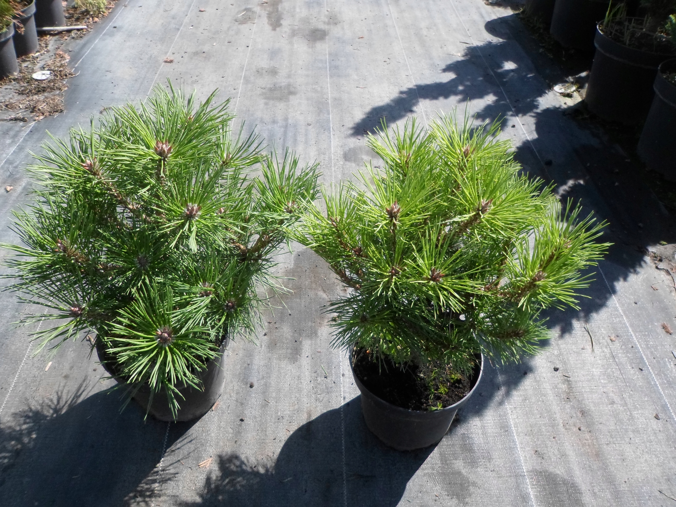Красивая карликовая форма сосны, из которой получаются почти идеальные шары. Через 10 лет достигает диаметра до 0,5 м, обычно прививается на невысокий ствол. Побеги короткие, жесткие, густо расположенные