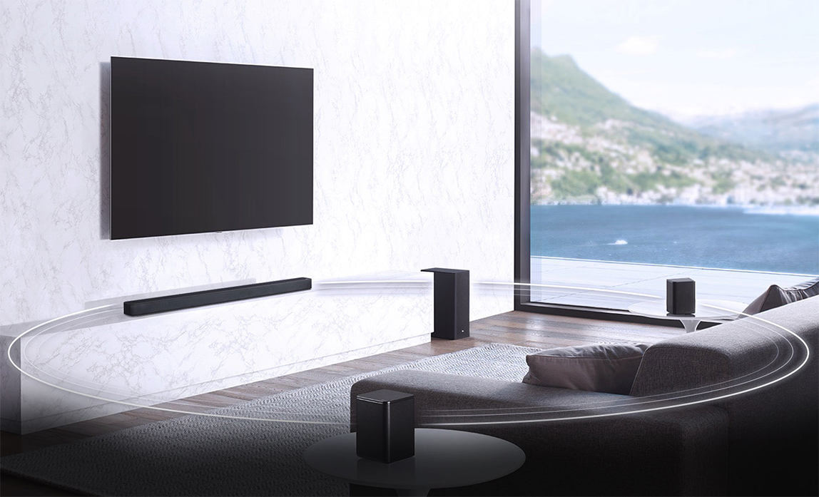 Саундбар LG SL6YF с технологией DTS Virtual:X обеспечивает исключительно захватывающий звук. Технология DTS с использованием трех фронтальных динамиков и сабвуфера окружает пользователя звуком со всех сторон.