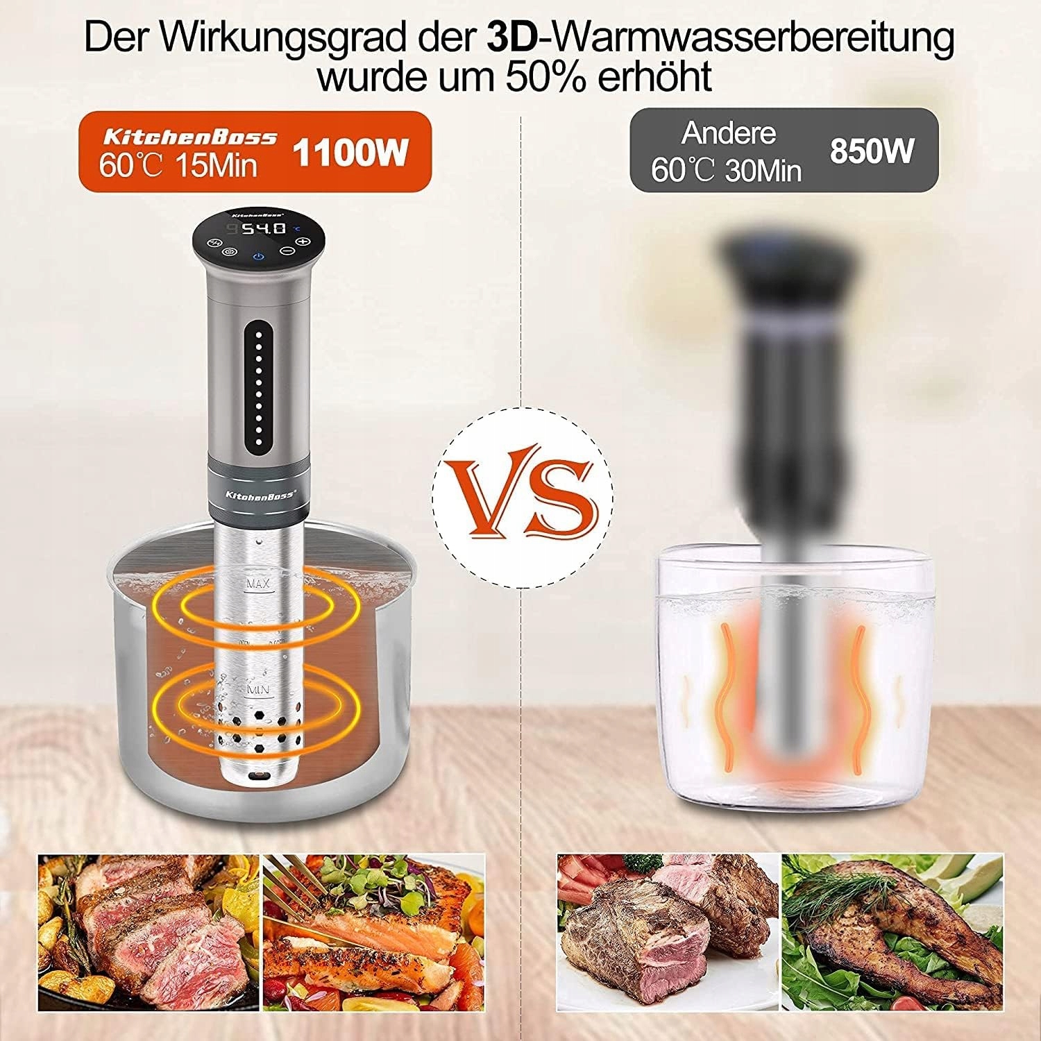 Прибор KitchenBoss Sous Vide гарантирует идеальную температуру и сочность каждого блюда – от стейков и рыбы до овощей и яиц 🥩🐟🥦. Благодаря циркуляции на 360° вода равномерно окружает продукты, обеспечивая тот же вкус и текстуру, что и блюда лучшей кухни мира 😋.
