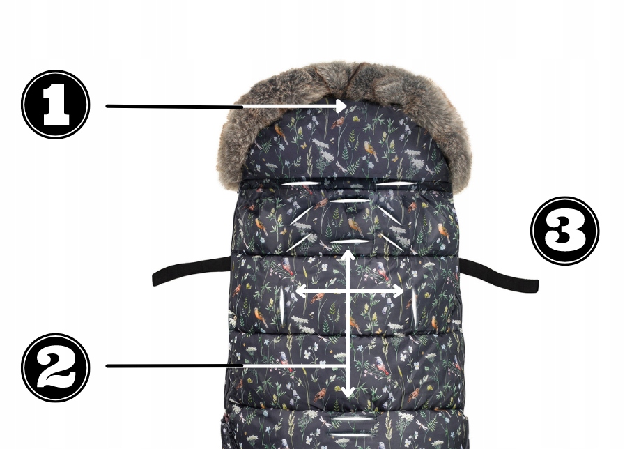 3️⃣ Две лямки на липучках позволяют фиксировать спальный мешок крепятся поочередно к ручке коляски или ее спинке.