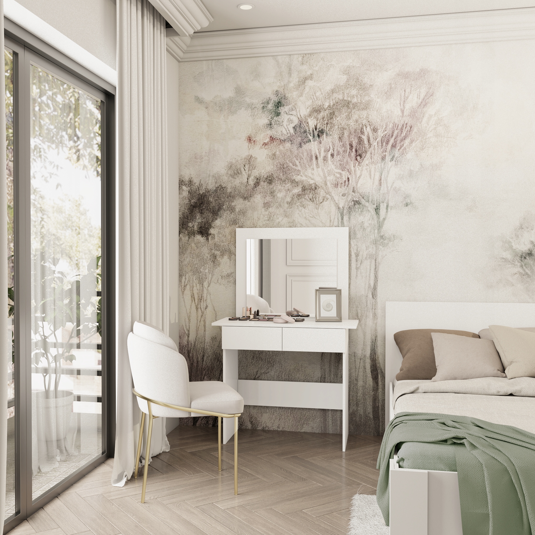 Спальня МИЛАН шкаф комод кровать 2x тумбочка туалетный столик БЕЛЫЙ ПРОИЗВОДИТЕЛЬ