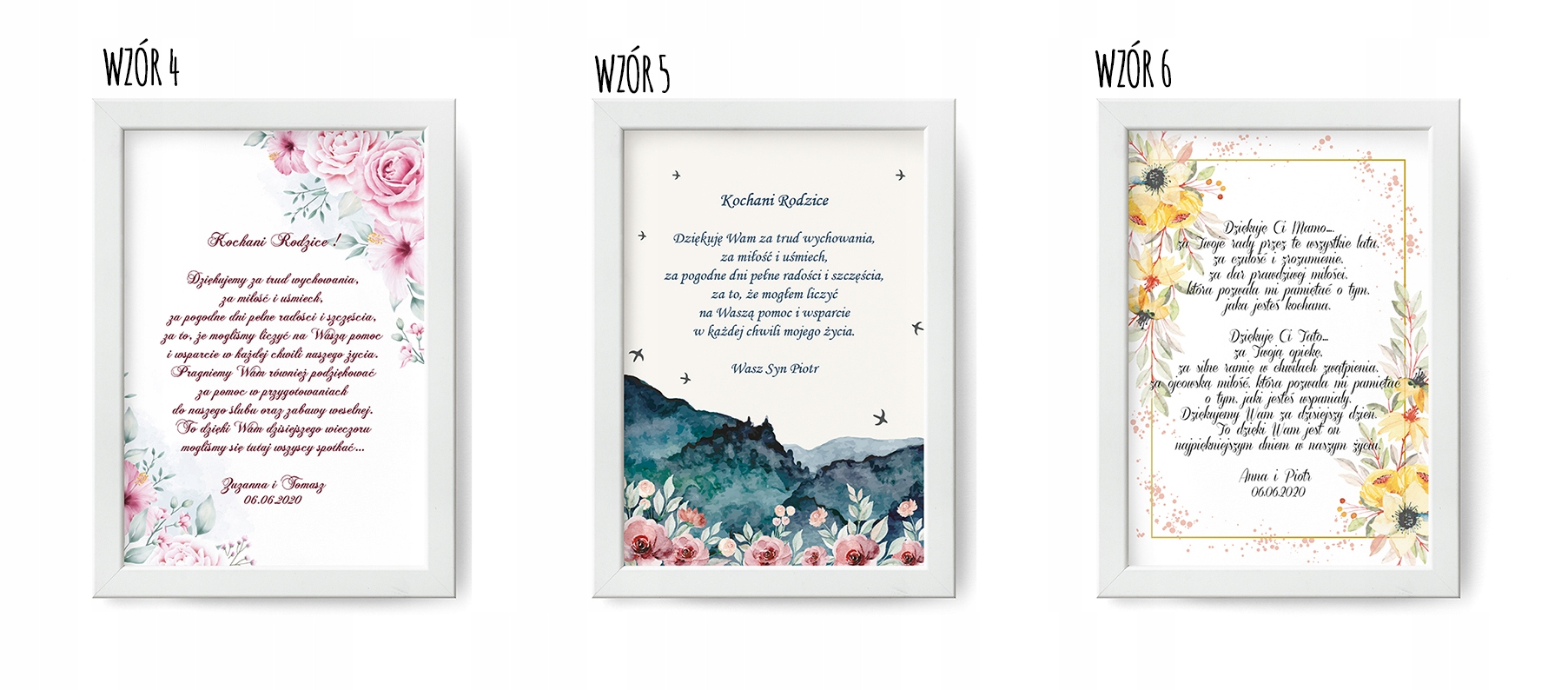 Красивый плакат, помещенный в рамку, с чудесным благодарственным письмом родителям внутри, описанным величайшими словами, выражающим эмоции и чувства, которые мы испытываем по отношению к нам. их, т. е.; «доверие, доброта, добро, нежность, чудесные минуты, счастье, прекрасное время» и многое-многое другое....
