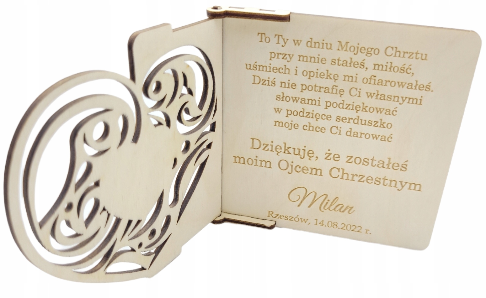 Деревянная фанера придает изделию элегантный и естественный вид. Благодарственное письмо крестному может быть не только декоративным, но и практичным, например, в качестве подставки для чашек или украшения стены. Это универсальный подарок, который наверняка понравится каждому крестному и станет хорошим подарком на крещение ребенка.