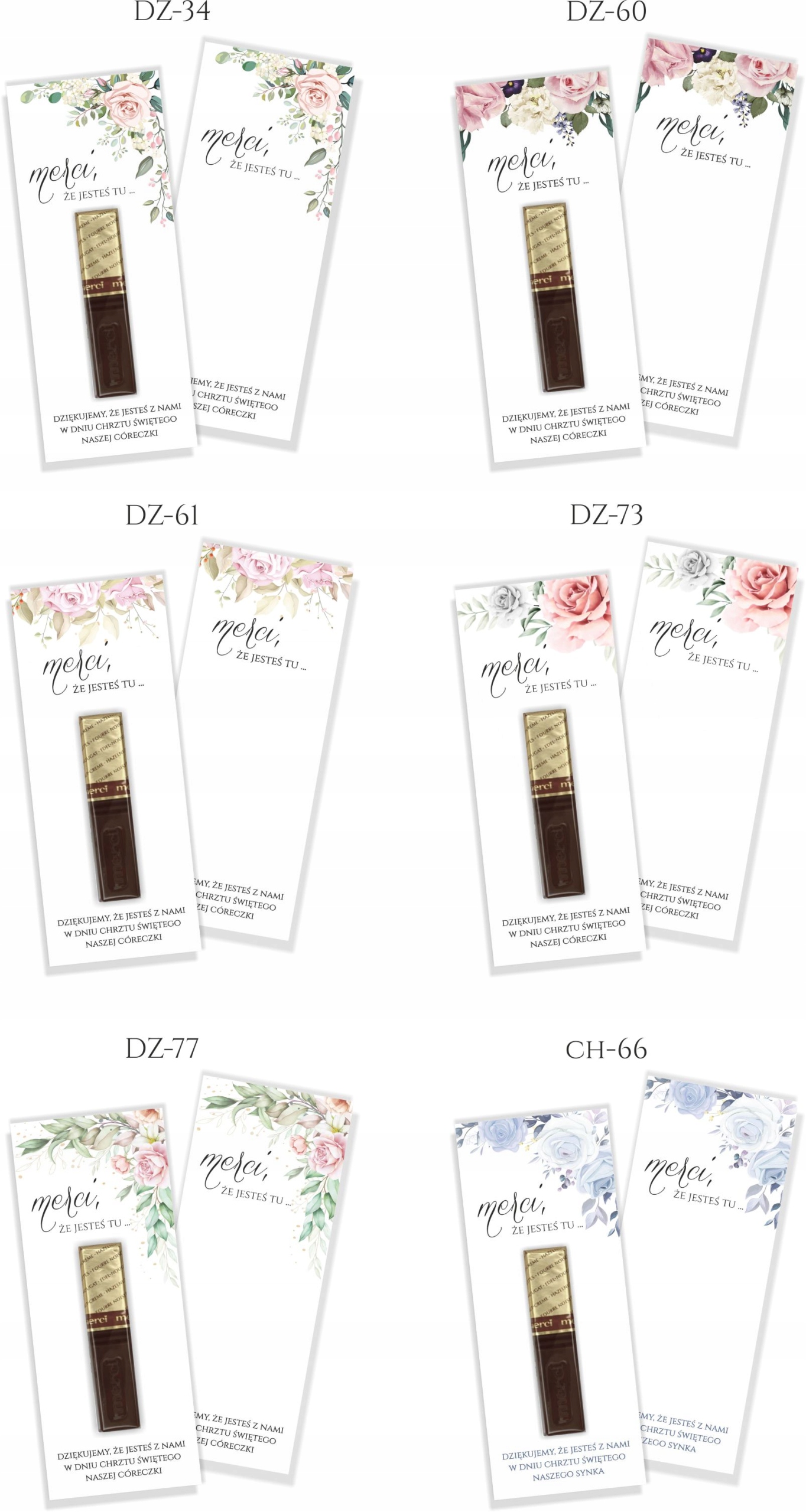 Шоколадные открытки Merci с очаровательной, нежной графикой идеально подходят в качестве благодарственной открытки для гостей на крещение, день рождения или причастие вашего ребенка.