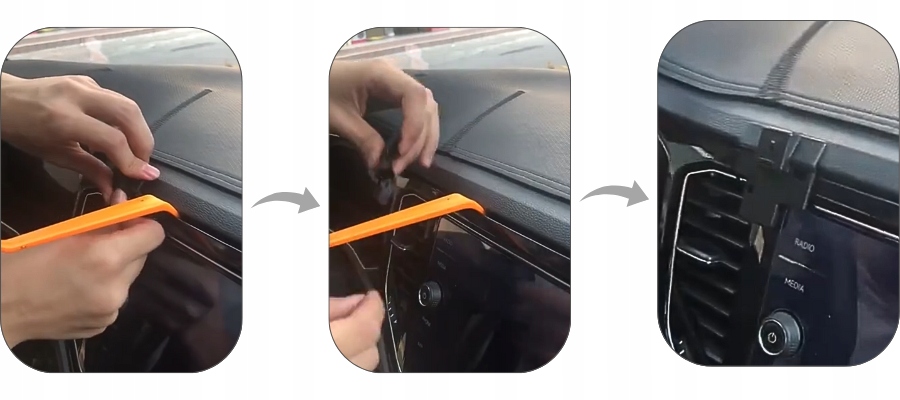 - Установка: Чтобы установить адаптер, вы должны слегка подорвать элемент декора с помощью ложки обивки, включенной в набор (вся сборка длится около 2 минут и показана в учебном видео)