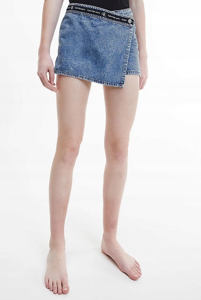 Юбка – брюки из коллекции Calvin Klein Jeans. Модель прямого кроя из джинсовой ткани.