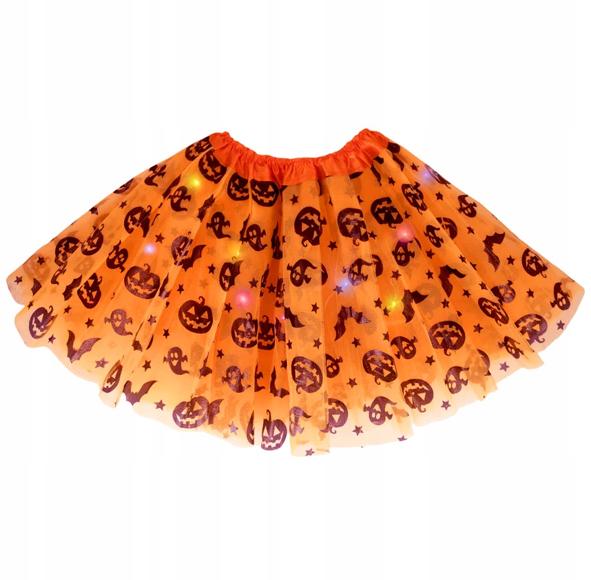 ЮБКА ТЮЛЬНАЯ ЮБКА Halloween, оранжевая, с тыквами, 30 см, светодиодная подсветка